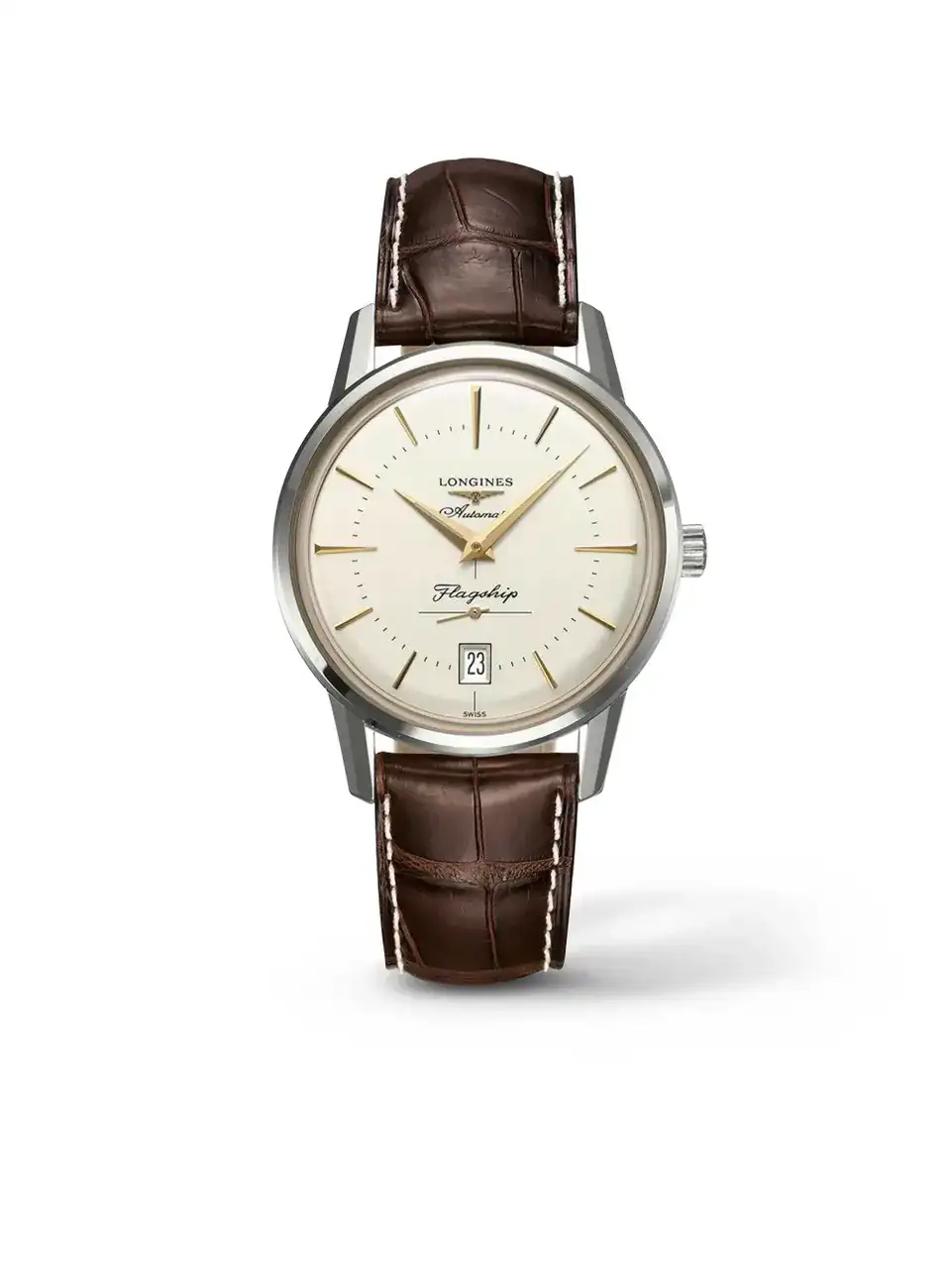 Flagship Heritage38,5 mm, acero fino con pulsera de piel de aligátor de color marrón, calibre de cuerda automática L615 con indicación de fecha 2050 Euros