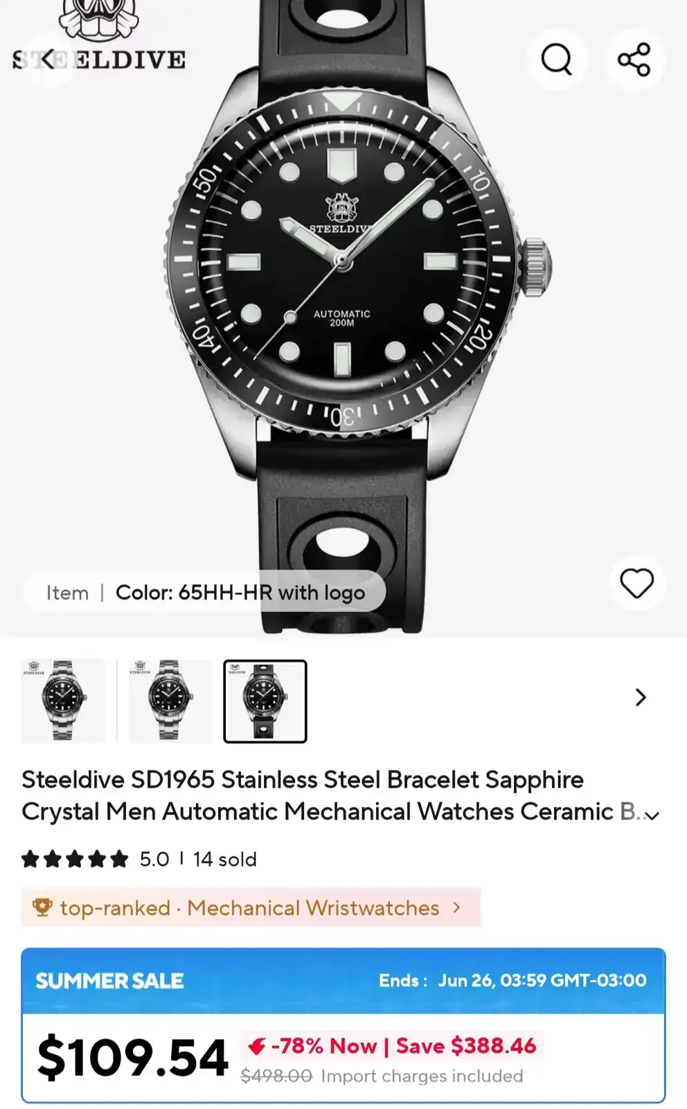 Este no lo he tenido, y tiene buena pinta. Si es como los demás Steeldive, tendrá un buen lumen. Lo peor, en mi opinión, es la parte trasera cuando trae el logo, porque suele tener mucho relieve y se nota áspero como que raspa en la piel. Pero, por lo demás, en general parece una buena compra.Recién llegado esta semana:Ver el archivos adjunto 3302567