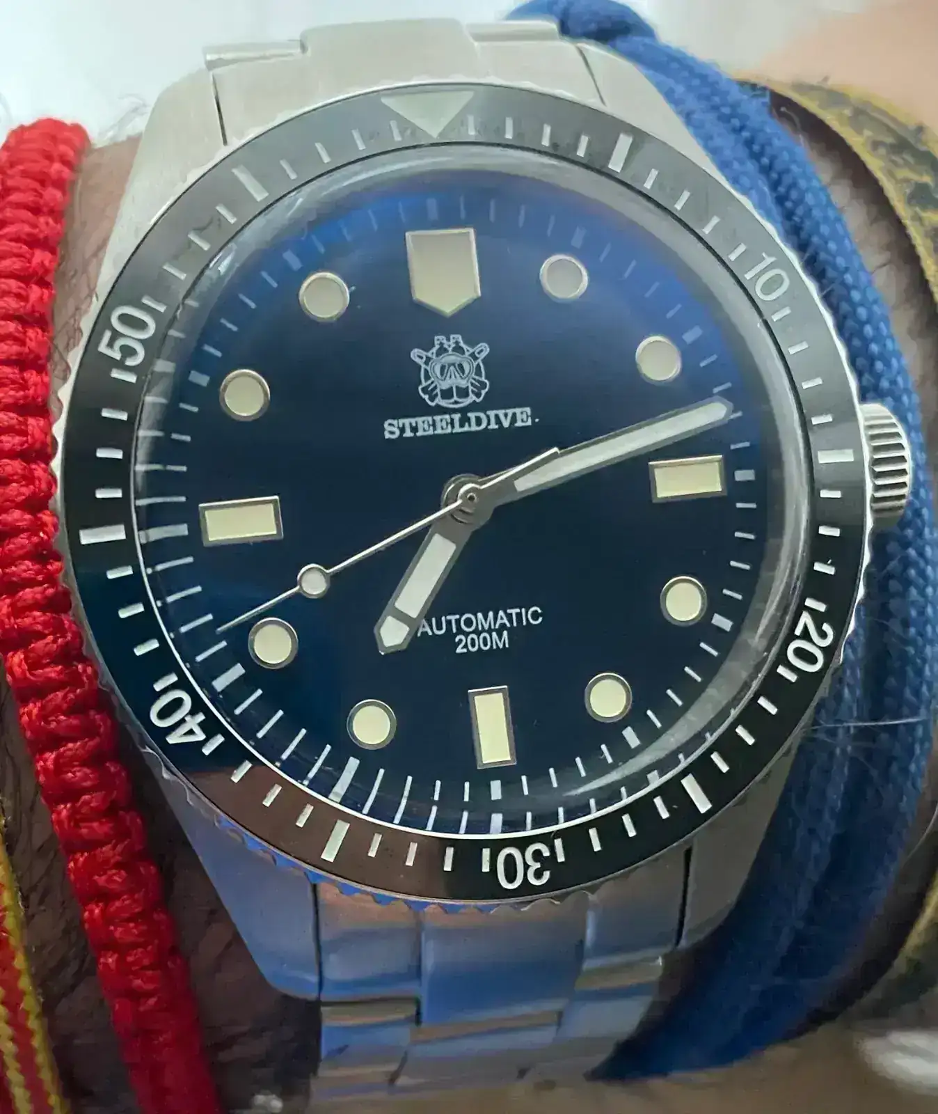 Excelente elección también, muy bonito.No conocia este Steeldive, durante un tiempo estuve buscando un reloj con zafiro abombado, sin datario, automatico y tamaño contenido, mi elegido fue un Thorn, pero este bien podria haber sido finalista, que bonito que es.