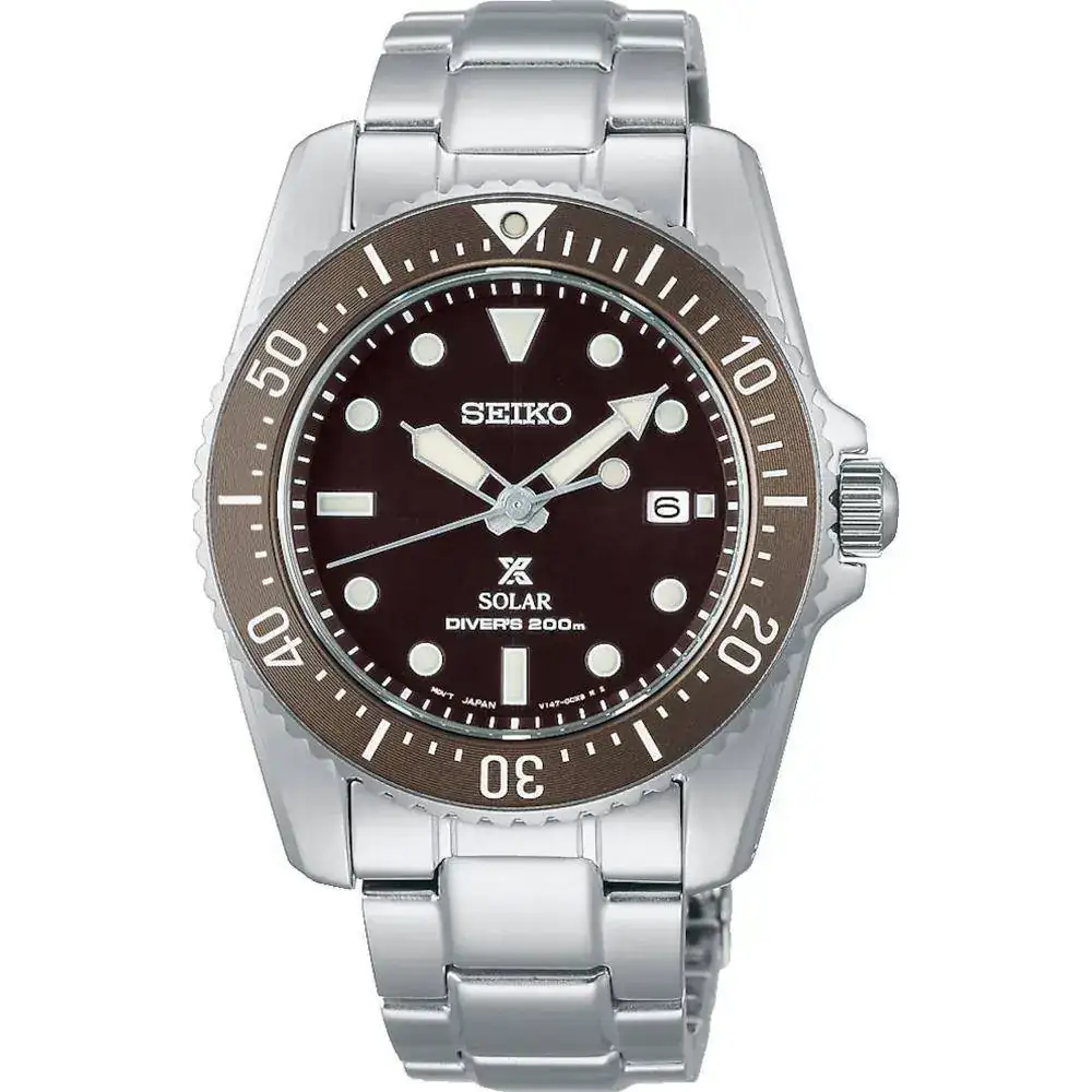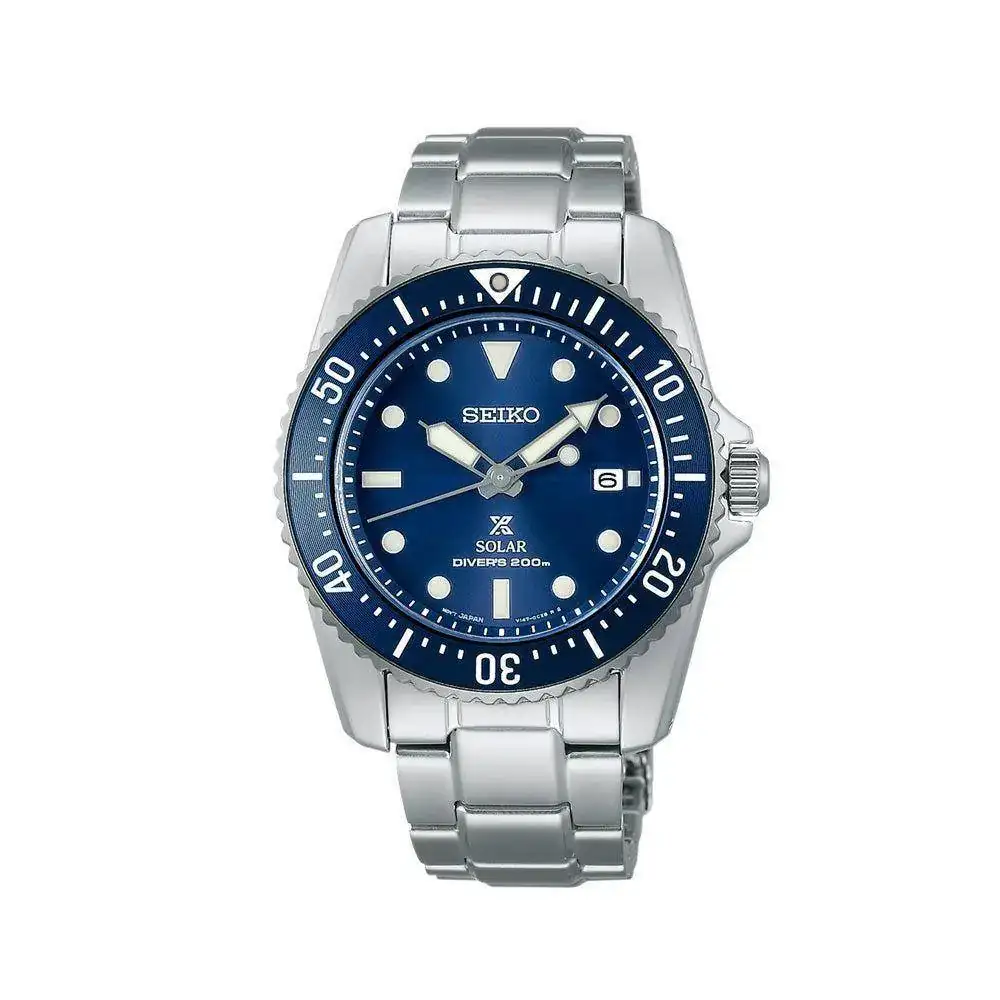 Cuarzo de 38mm, sin fecha ni números romanos. 300m, zafiro, brazalete de acero, superluminova, y calibre Seiko VH31 que se mueve a 4 alternancias por segundo. Y muy veraniego 👍