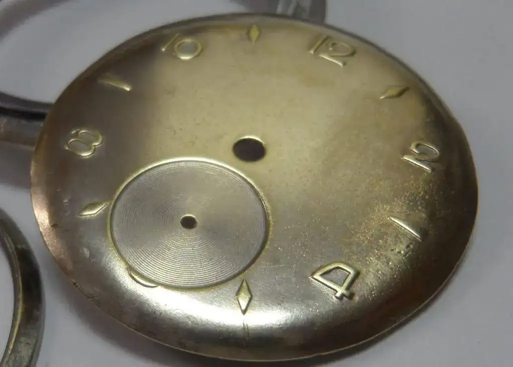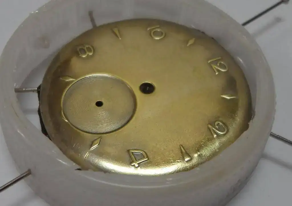 Una vez quitada la grafía aparece la esfera con una generosa capa de barniz para metales que le preserva el brillo al latón