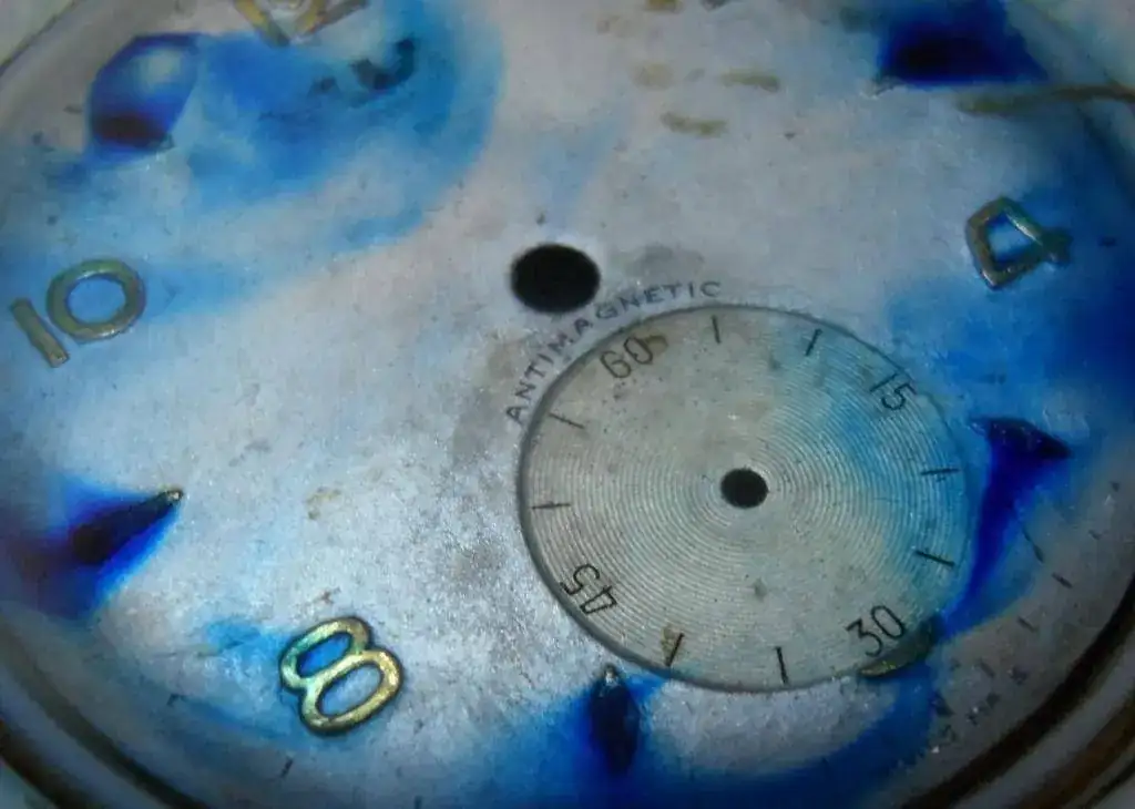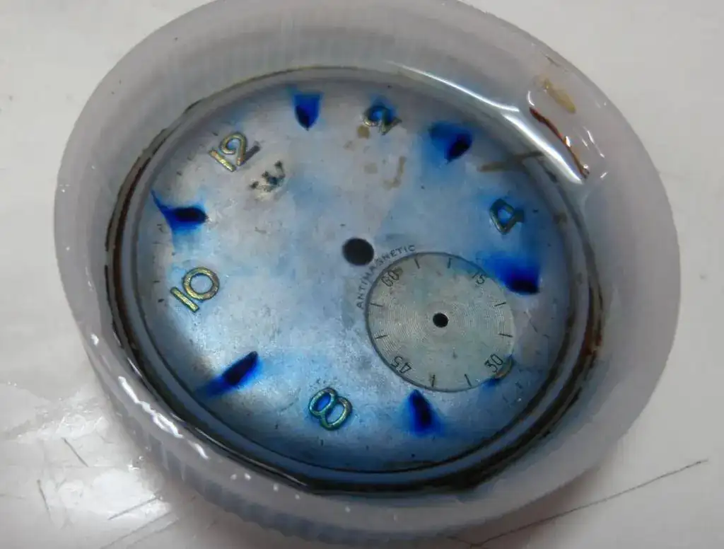 Las manchas de boligrafo bic empiezan a retornar y la pintura plata titanlux que anterior resturador aplicó sobre la esfera empiezan a aparecer....