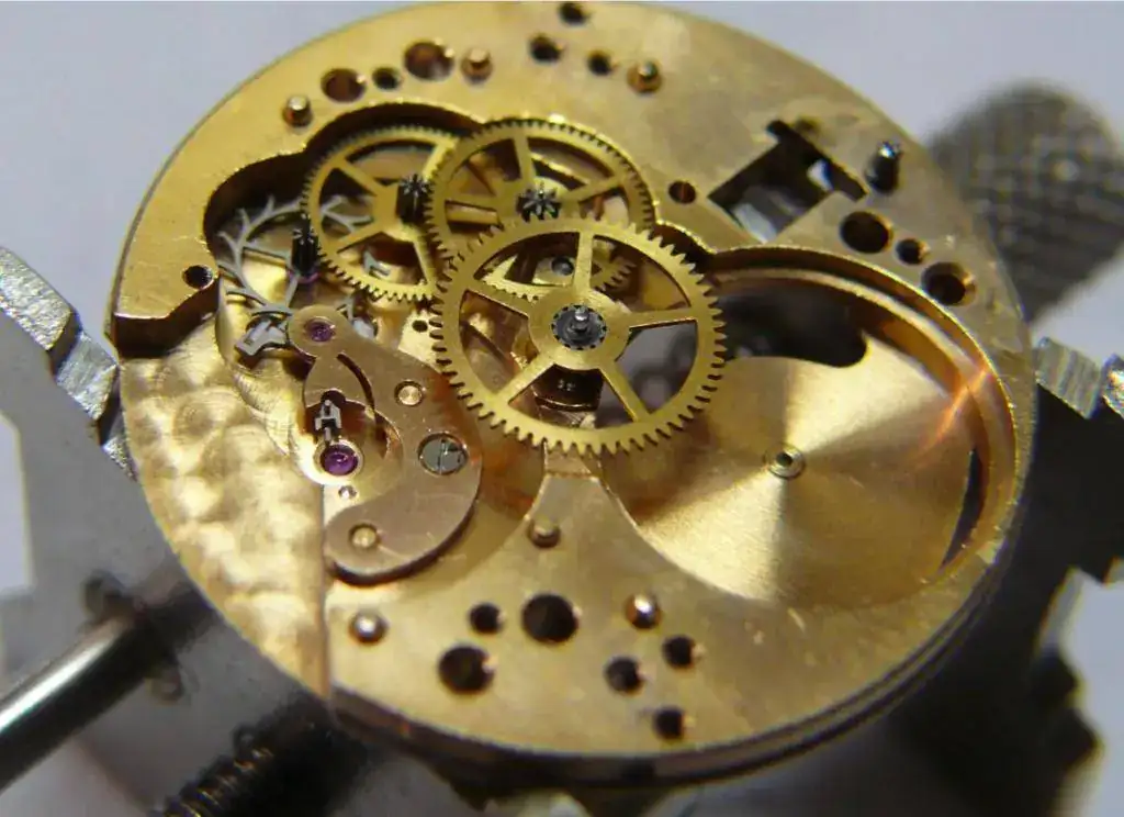 Un calibre robusto, encobrizado y latiendo a 18000 A/h desde 1952. Con más de 65 años sigue manteniendo su brillo, y con sus 13 líneas ocupa una caja de 38 mm., grande para la época.