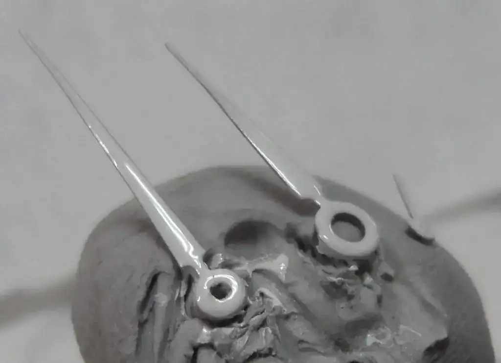 Retoco de nuevo la esfera con la pintura plata titanlux y pinto de color dorado granuloso las agujas....