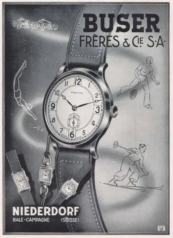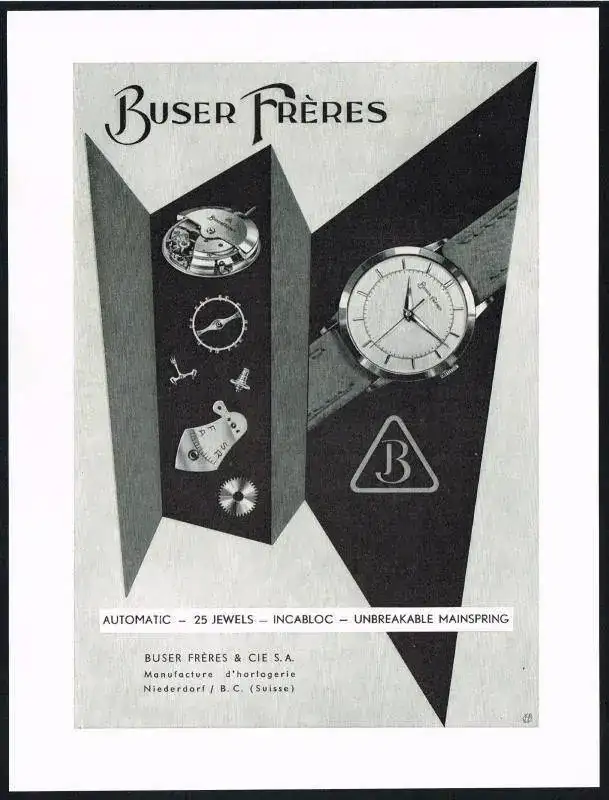 Durante su andadura como fabricante de relojes desde 1927 hasta su fusión en 1961, Buser Freres registró hasta 44 marcas, en las que, a parte de montarle calibres propios, también alojó otros calibres de la época de Ebauches, s.a.
