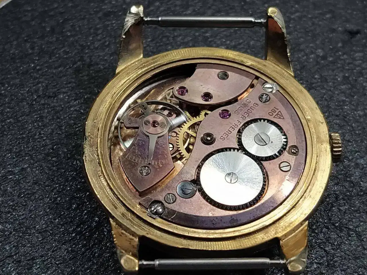 Buenas tardes, me presento en este subforo, compartiendo este recien llegado a casa y una duda. Se trata de un reloj de la marca... ¿Guz-ma?, que en su interior aloja un Buser Freres 180 que necesita un repaso.