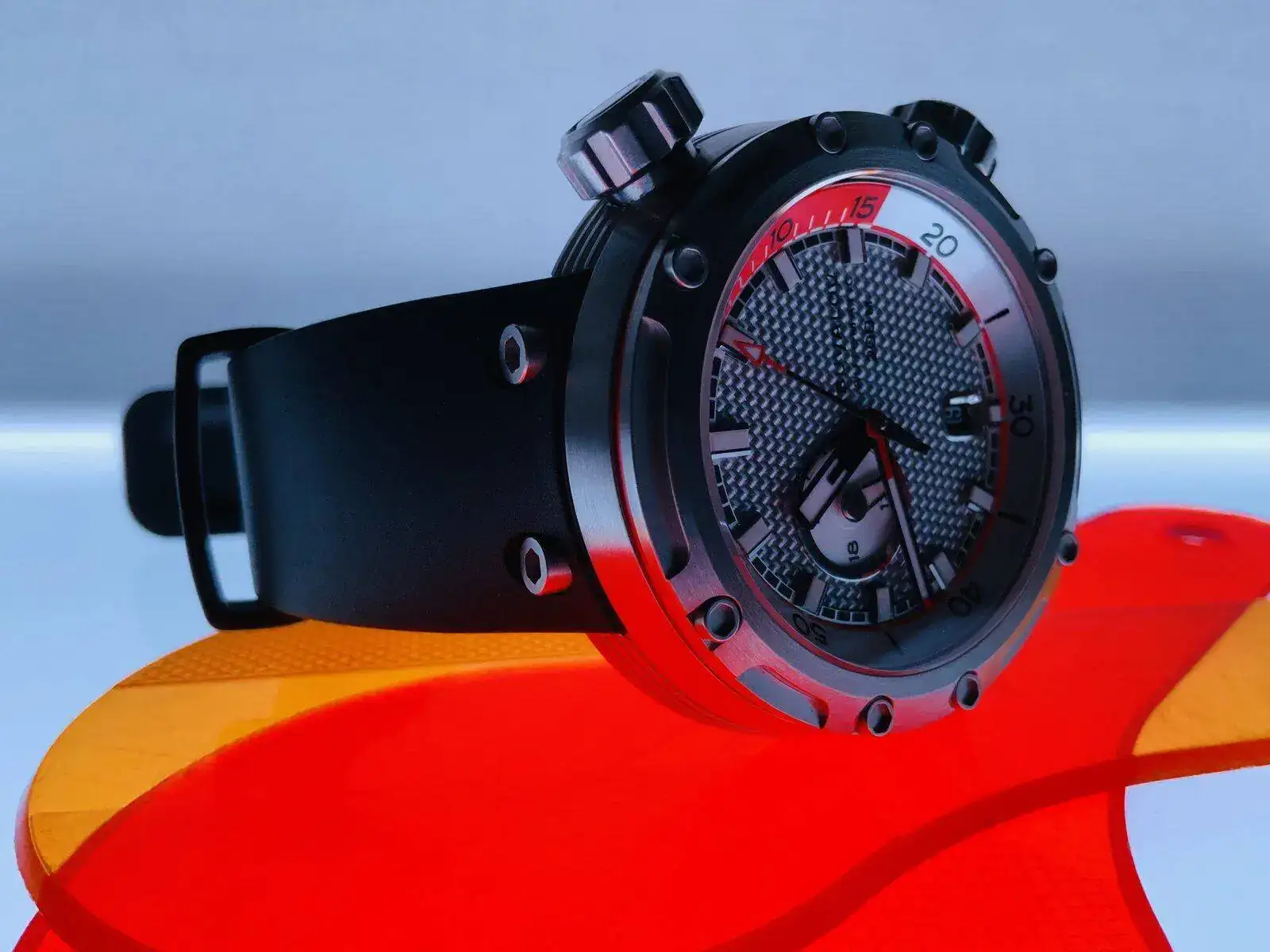 La forma de la caja no es el único acierto en cuanto al diseño, ya que el reloj, además de contar con muy buenos acabados, está lleno de pequeños detalles que se suman a lo que nos cuenta el reloj; desde el uso ingenioso del color (la corona que acciona el bisel interno comparte color naranja con este) a una espectacular trasera, pasando por una esfera que con su color y textura hace referencia a la piel del tiburón que da nombre a la pieza, el "Акула" (Akula). El reloj monta un calibre NH37A, que cuenta con la complicación 24 horas.