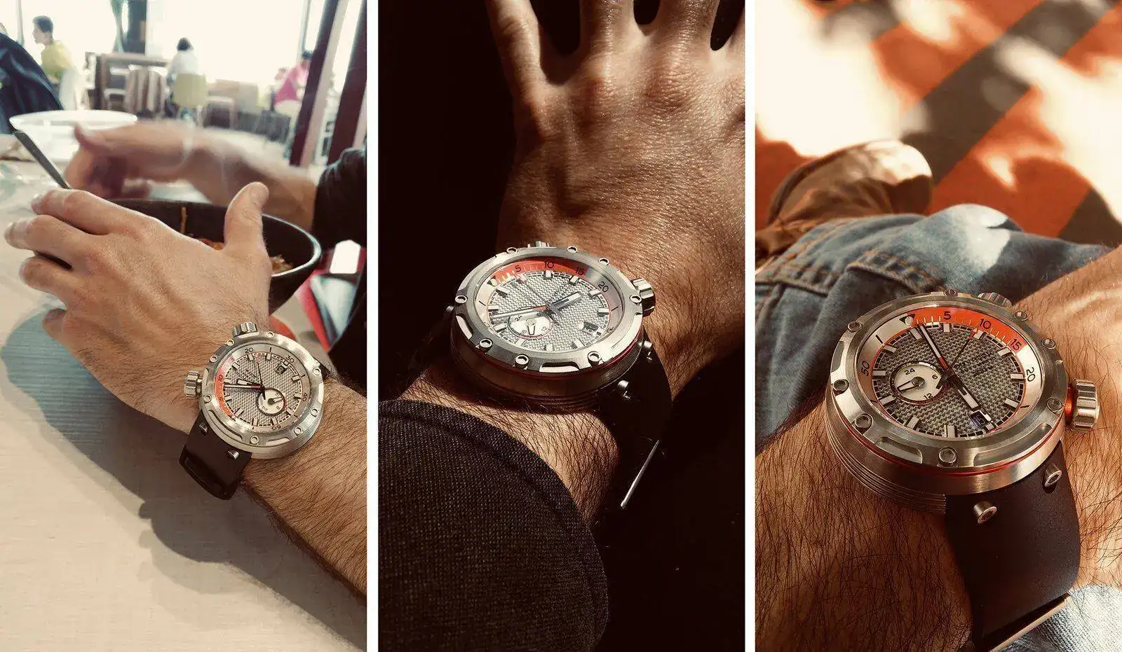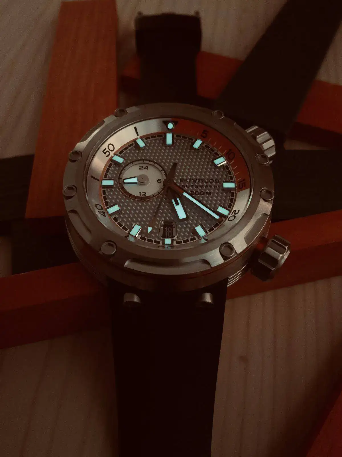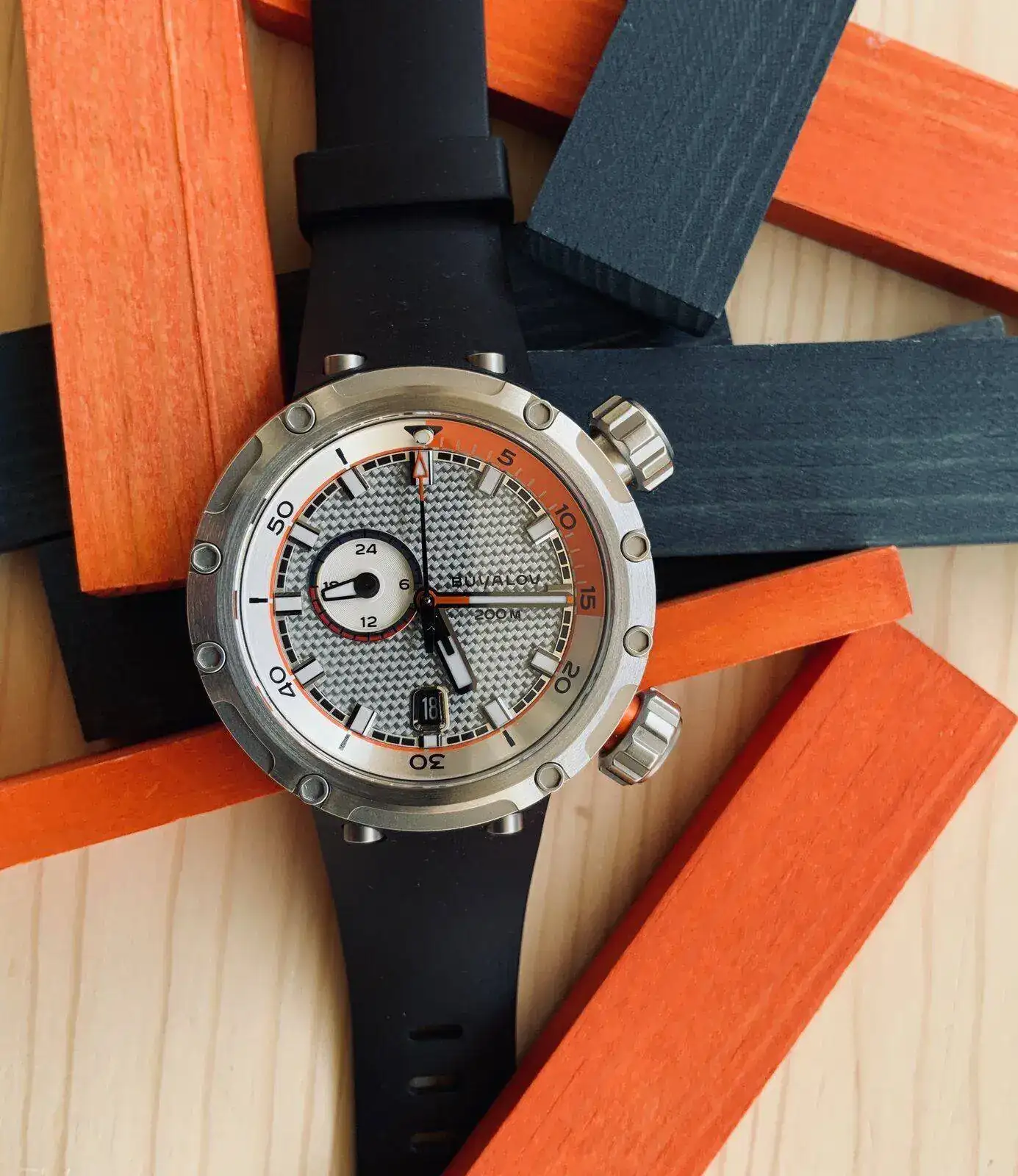 Tras una semana de uso continuado,y con una muñeca mínima de 16,5 cm, puedo asegurar que este Buyalov es muy versátil pese a su tamaño y marcado carácter. Naturalmente, en esta percepción algo tendrá que ver que el resto de mis relojes sobrepasen sin excepción los 40 años de antigüedad, lo que los hace delicados si tienes que lidiar con criaturas de dos y tres años.... llevar este tanque supone, en ese sentido, todo un alivio. ¡Y también me ha permitido bañarme con reloj por primera vez desde los lejanos '90!