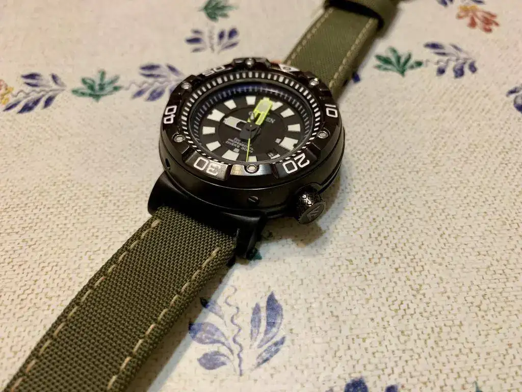 Soy "asín" de caluroso, y además vivo en el caluroso Sur. Así que hoy ya he vestido de verano a todos mis buzos japos. Como ya comenté el otro día, no sé muy bien porque, pero los divers japos (al menos los que tengo en la actualidad), los veo mejor con correas de caucho o canvas que con sus propios brazaletes de acero. Y tengo que reconocer que eso es muy raro en mí, ya que soy un "talibán" del acero...