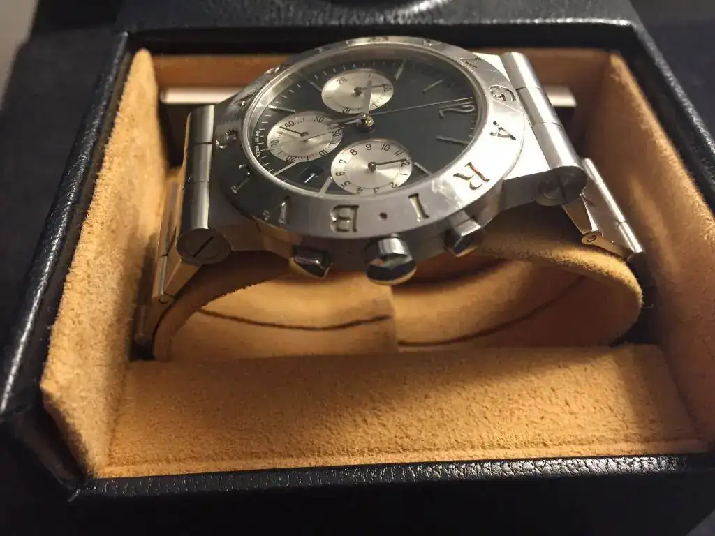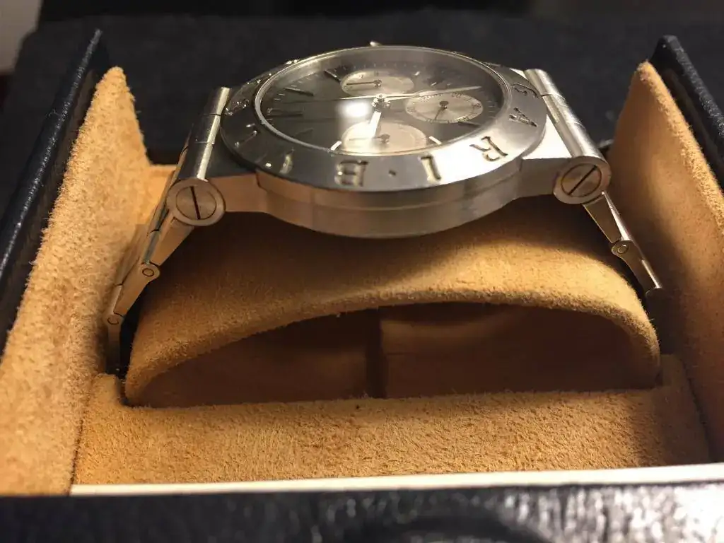 Vendo fabuloso cronógrafo Bvlgari CH35 de acero con armis de acero estimó para muñecas de hasta 18cm, yo tengo 16.5-17 y tiene eslabón y medio más, pila recién cambiada esta misma semana, el calibre es mecánico- cuarzo, es decir, el calibre es de cuarzo pero el cronógrafo se mueve continuo.