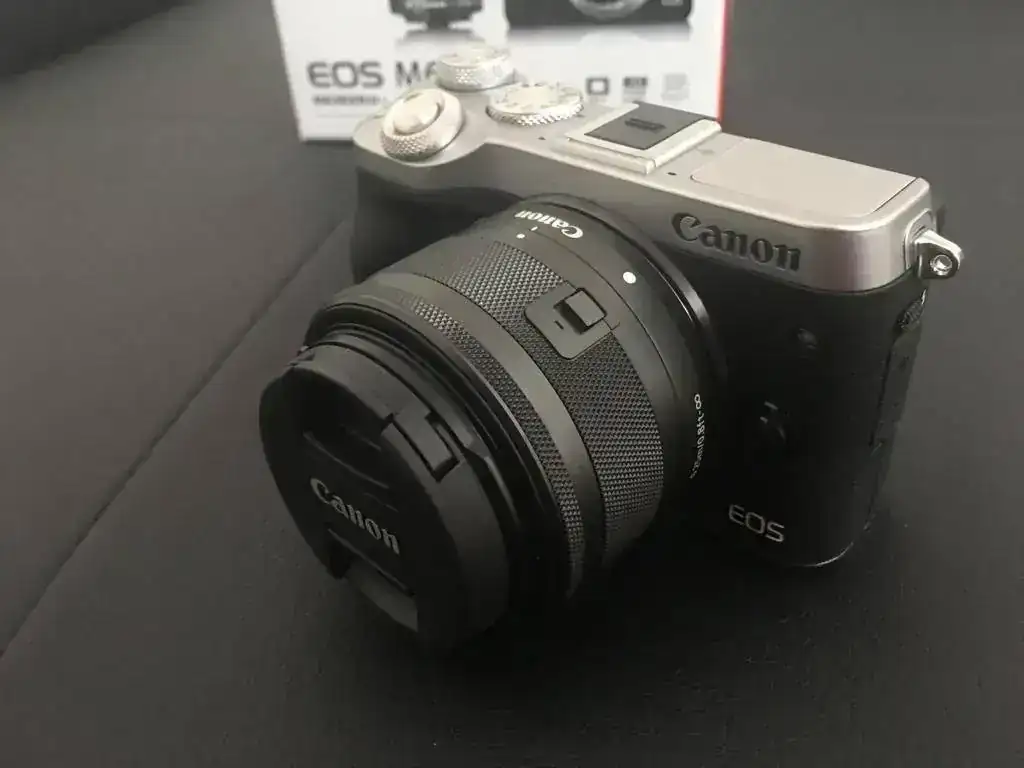 Canon EOS M6 - Cámara Evil de 24.2 MP (Pantalla táctil de 3.0'', DIGIC 7, NFC, Dual Pixel CMOS AF, Bluetooth, 5 - Axis Digital IS, Full HD, WiFi) Negro - Kit Cuerpo con Objetivo EF-M 15-45