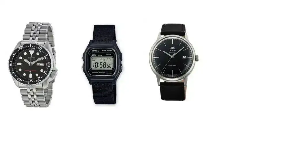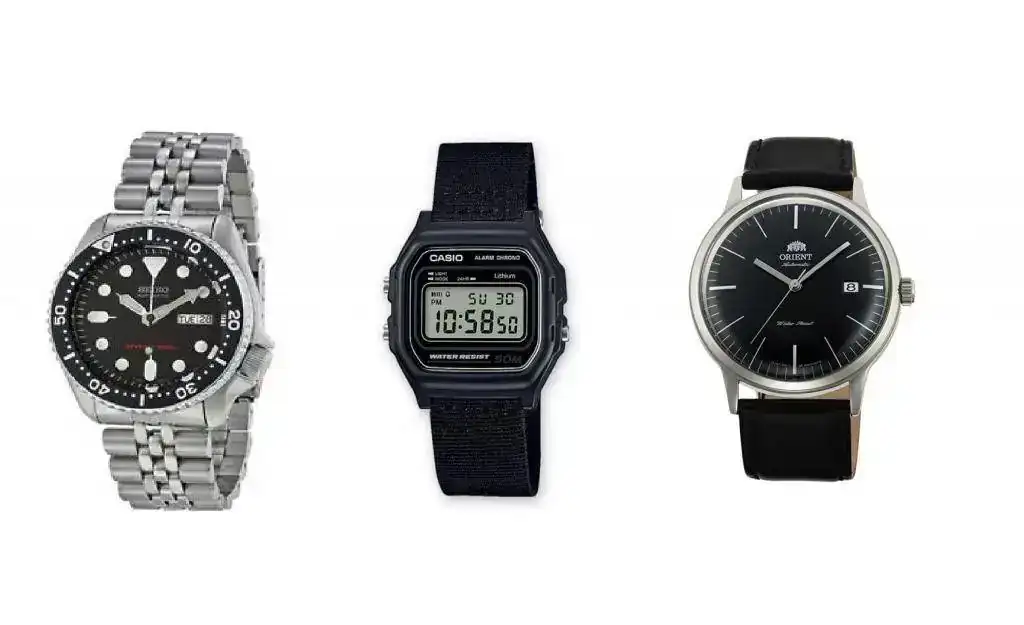 Por ejemplo un Bambino cubriría el reloj elegante y un Seiko 007 podría cubrir los otros dos. Aun así pillaría un Casio W-59B-1AVEF para hacer el chorra por ahí.