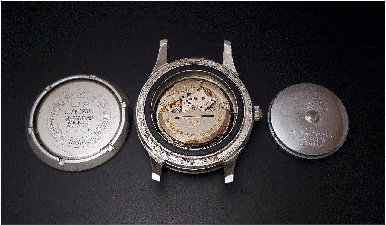 Justo ese enlace que compartes es una de las fuentes que consulté para el artículo, comenta que LIP y Blancpain usaron este diseño de tapa trasera para un diver para la armada francesa y se preguntan si la idea habría llegado a Vostok a través de LIP. Aquí unas fotos de la trasera y un desmonte de un FF comparado con un Vostok Type 350, se puede ver que, sin ser idénticas, comparten elementos del diseño.