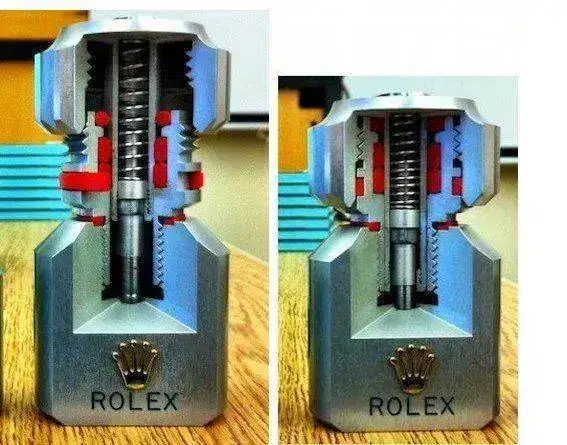 Esto va en realidad del diseño y desarrollo del reloj de submarinista, que es de nuestros temas favoritos. Como ya sabemos, una de las soluciones para lograr la estanqueidad fue la corona roscada. La corona roscada creaba un problema: no se podía usar una tija fijada a la corona, había que hacer una que se soltase de la corona en la posición roscada y cerrada.