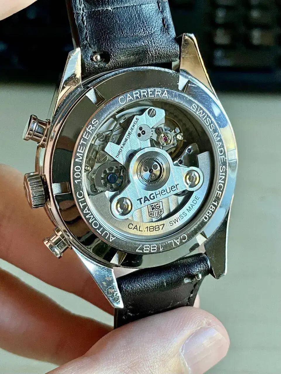 Fue entonces cuando pensé "¿por qué no adquirir una referencia diferente con (más o menos) el mismo aspecto?". Y así fue como acabé en búsqueda y captura de un Carrera Calibre 1887. Recordaba toda la historia de este calibre, la patente de Seiko y todo eso, pero siempre pensé que era un muy buen movimiento, y entendí perfectamente la política de TAG Heuer con respecto al 1887. En mi opinión, lo que hicieron fue totalmente legítimo, y el 1887 encaja con la definición de lo que es un movimiento de manufactura.