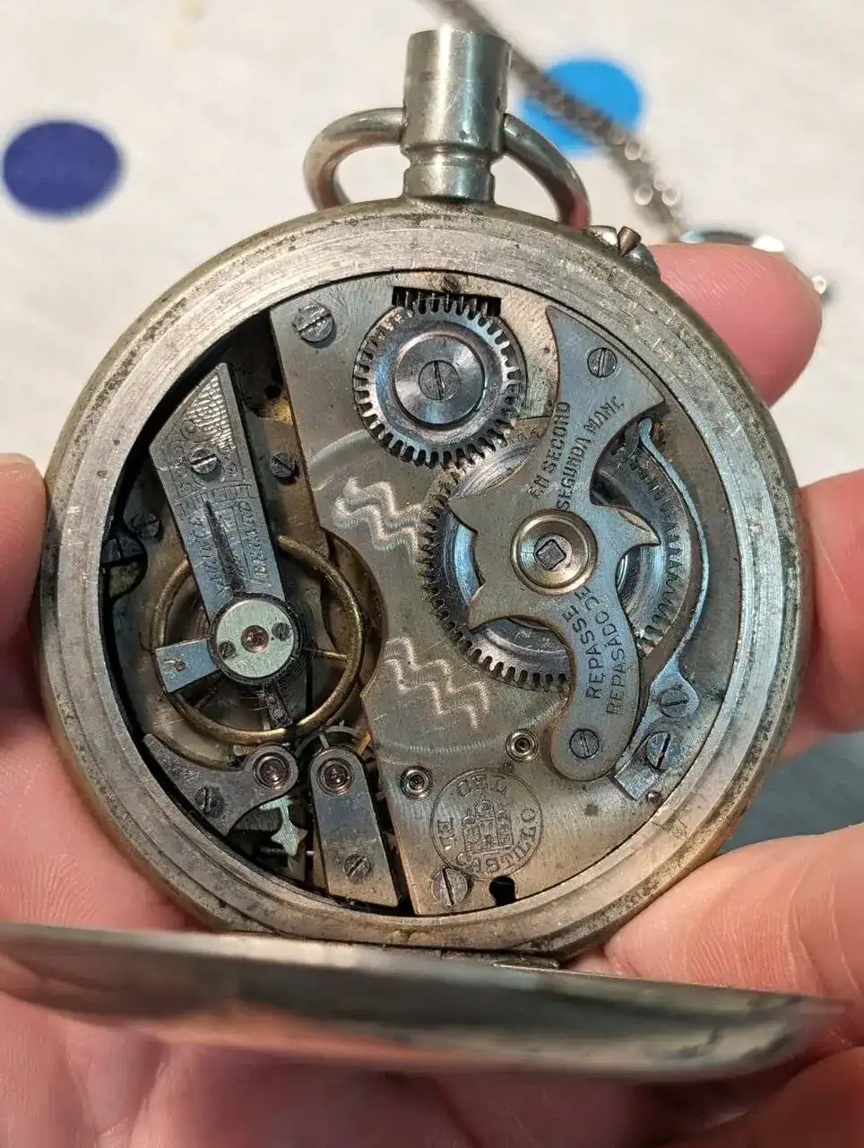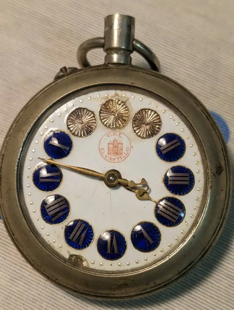 Nunca había visto "CEL El Castillo", y buscando no he encontrado nada de info. Únicamente uno por ahí en venta. No se si simplemente será maquinaria tipo Roskopf con un nombre de aquí. A ver si alguien conoce la marca, cómo de antiguo puede ser, o alguna información sobre el reloj. Aunque me da la sensación de que no merece la pena arreglarlo.