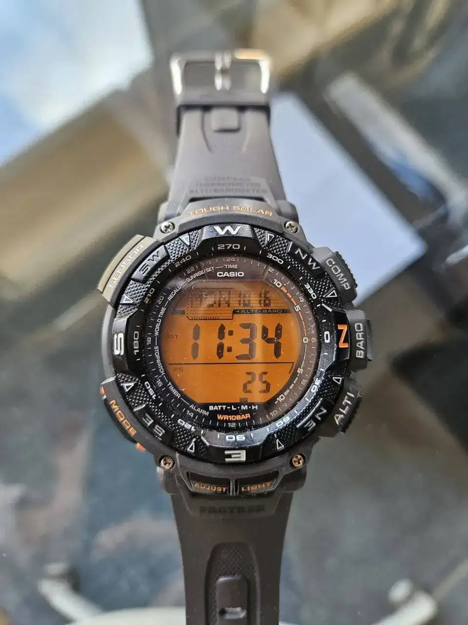 En un casio Pro Trek me aparecía ayer tarde una C parpadeante. La pantalla entera apagada y solo una C que parpadeaba abajo a la izquierda. No encuentro nada en Google.