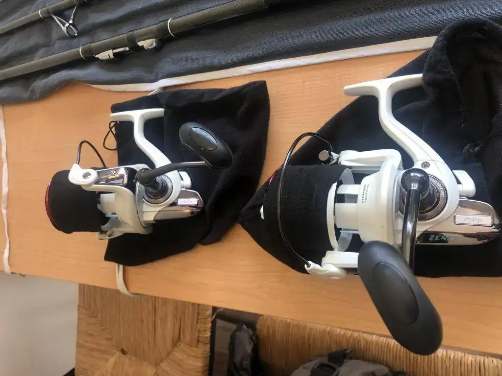 Las vendo con 2 carretes Vertix Zenet blancos que tienen un año de antigüedad y con muy poco uso (también lavados y siliconados después de cada salida), con 4 bobinas cargadas en total.