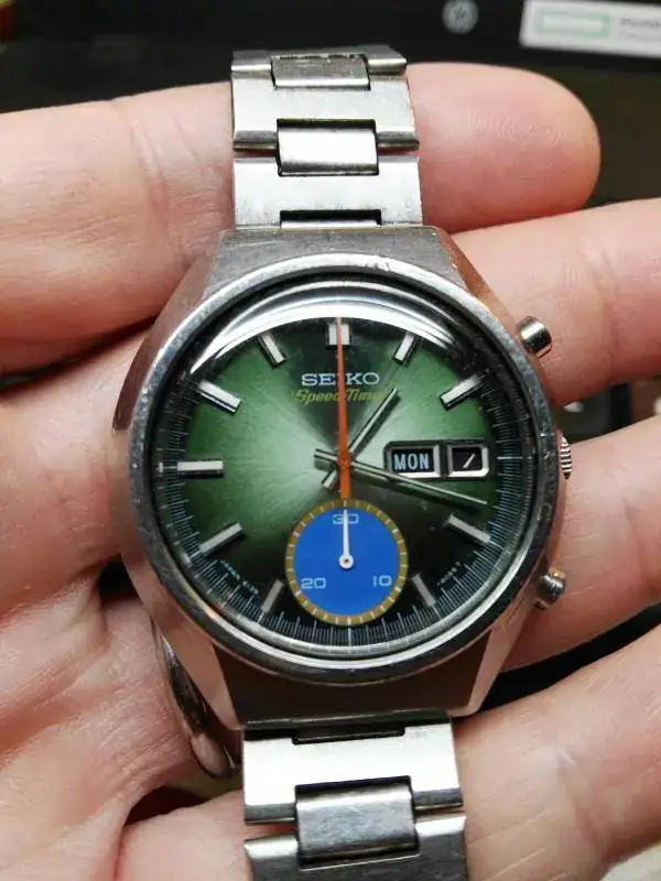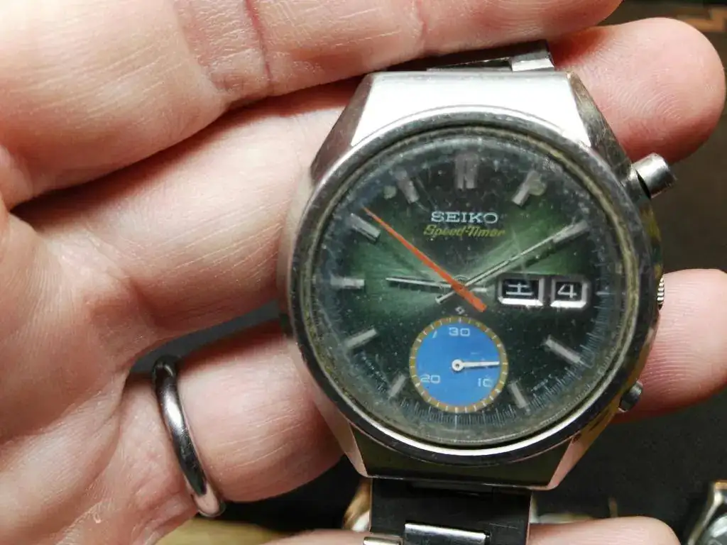 1- El Seiko SpeedTimer: le cambié el vidrio, estaba todo arruinado. Le puse un reemplazo en plexi, acomode los pulsadores y le hice limpieza completa a la máquina con cambio de orings, me falta pulir hebilla y un poco la caja. Resultado: funcionamiento 10 puntos y estética bastante pasable.