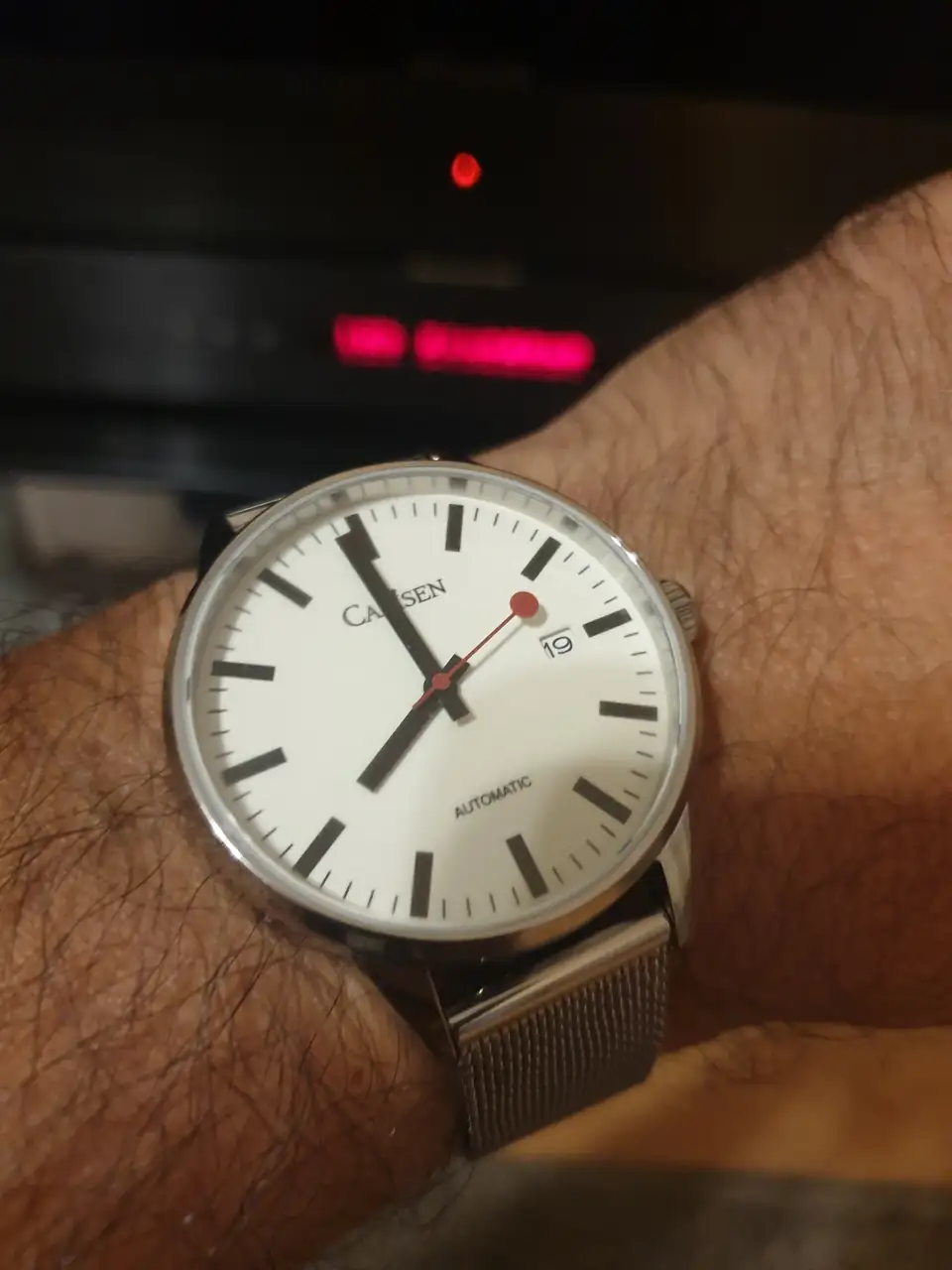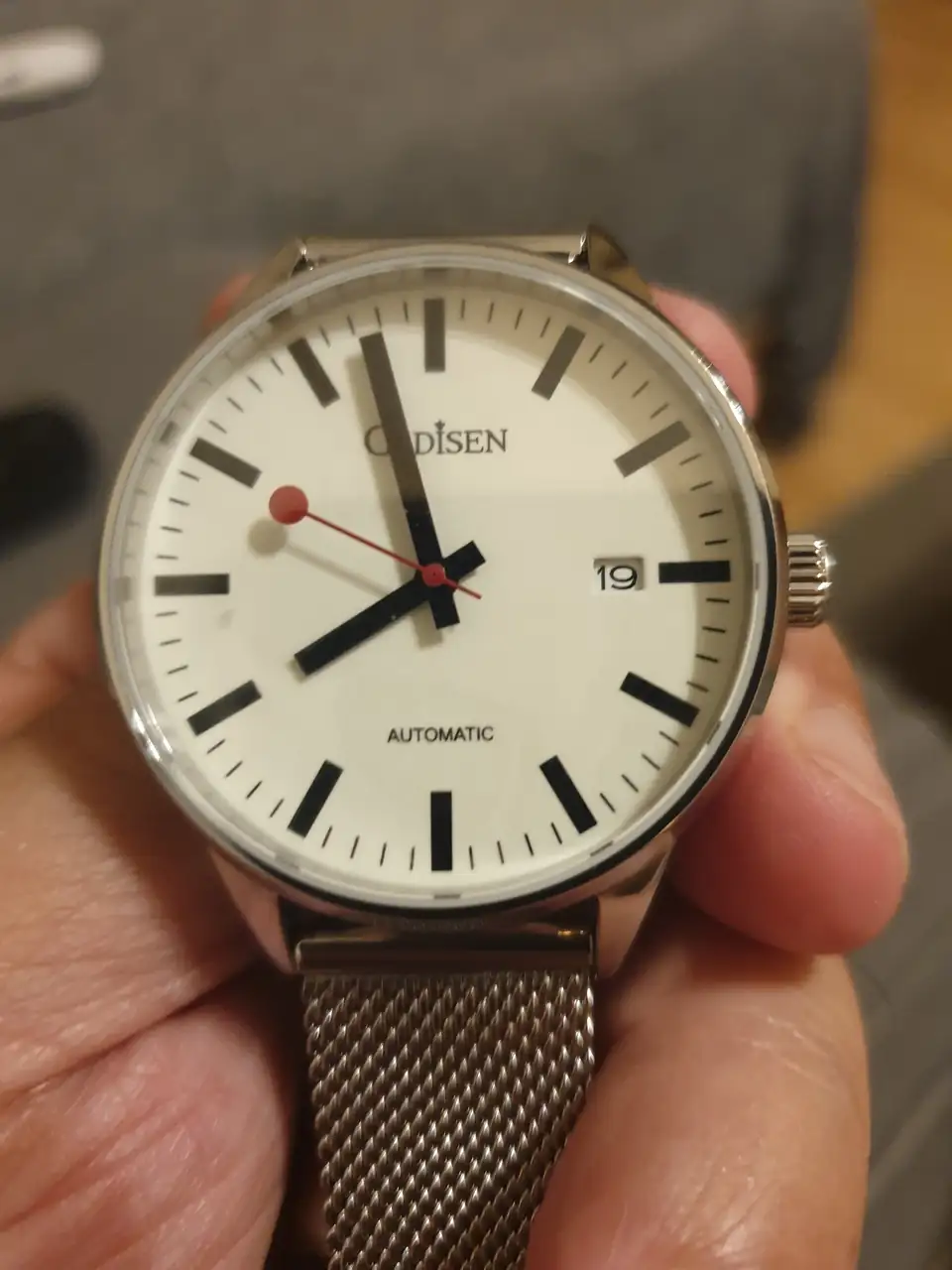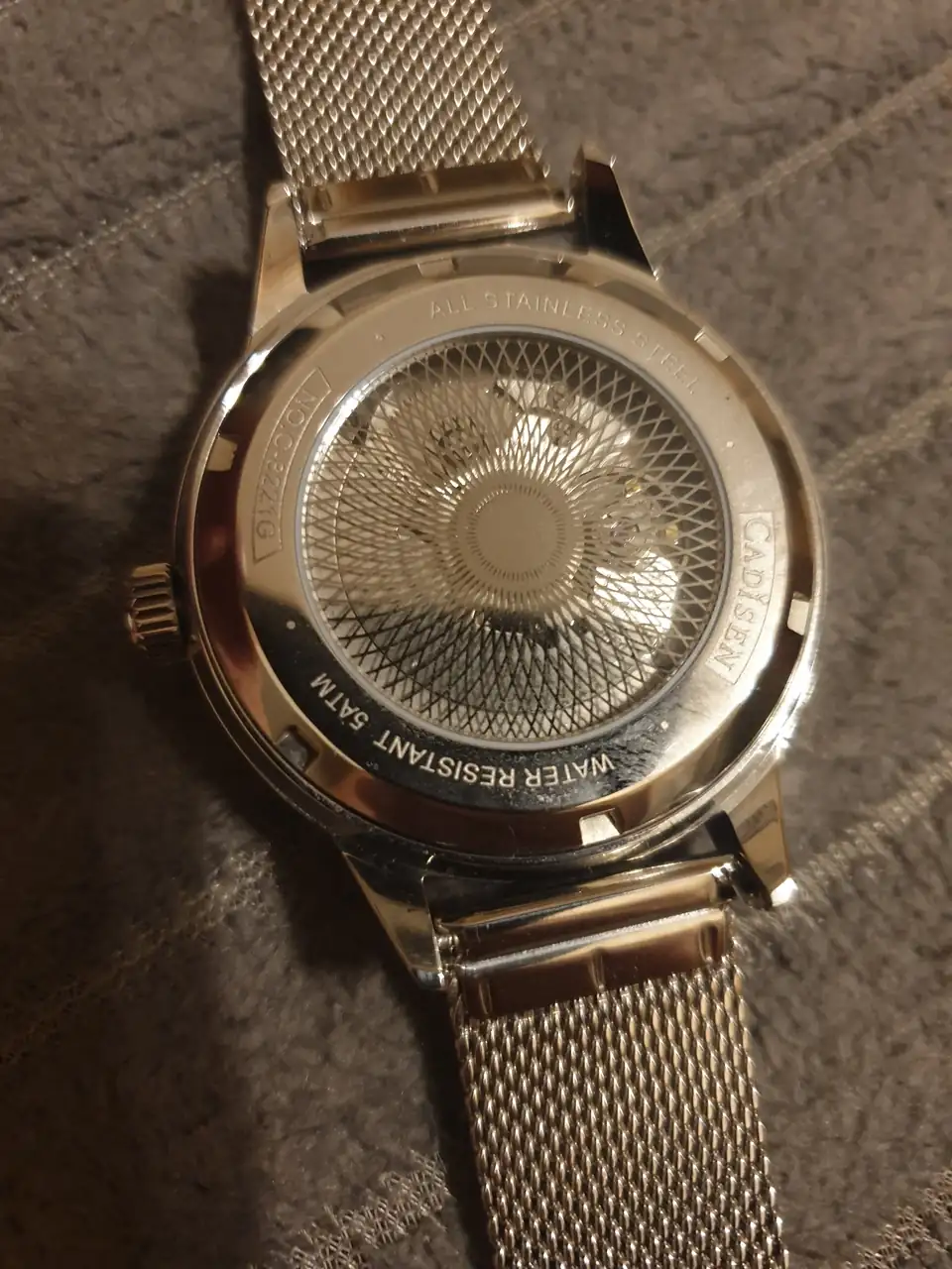 Como veréis en las fotos la estética es de Mondaine, a priori no es mi estilo pero por probar algo distinto.... Y cuando me ha llegado a sido una muy grata sorpresa. Buenos acabados. La milanesa, que me daba pavor fuera una cuchilla , resulta que es supercómoda y sin bordes afilados o zonas bastas. El calibre no digo nada que ya que es el sempiterno y bendito NH35, no se como irá de fino porque lo acabo re recibir, ya os diré. Y de regalito el lumen...si los Addiesdive y Steeldive y demás son potentes este ya debe ser una apuesta. Se retroilumina todo el dial, a oscuras y estando bien cargado es una linterna, literal!🤣 ya veremos la durabilidad pero apunta maneras. Caja pulida a espejo, y en la parte de atrás otra chuche, calibre visto y tapa decorada! Me parto! son la bomba esta gente.