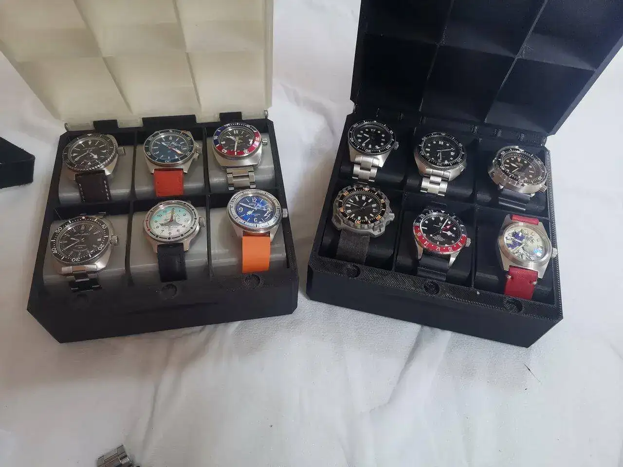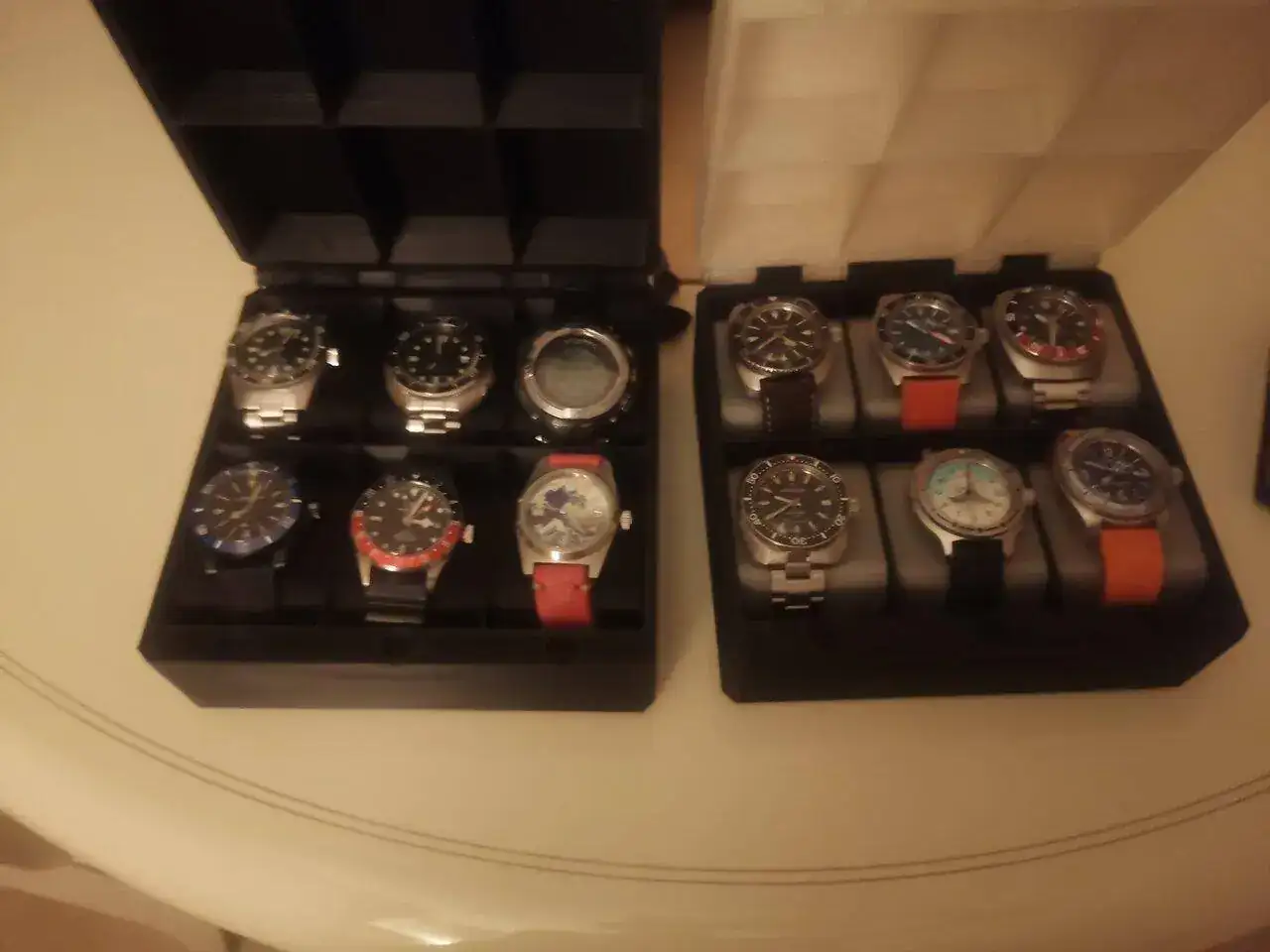 Impresionante. Me quito el sombrero 🙌🙌🙌Llega la caja negra... Pues eso, que he pedido unos rollitos de plástico y he hecho huecos para relojes chinescos. Esta vez incluso con símil de piel en la tapa...
