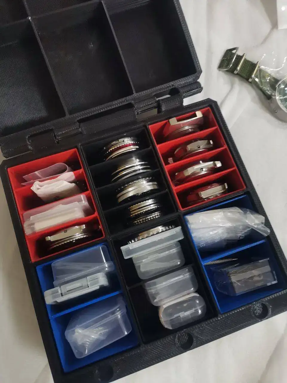 Hablando con el amigo y compañero @MadMallorca sobre mi idea para alojar más relojes, le vino a la cabeza hacer esos compartimentos, que además son de quita y pon. Una solución rápida y eficiente.