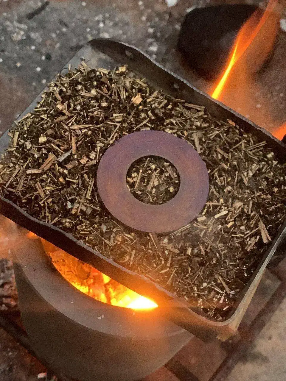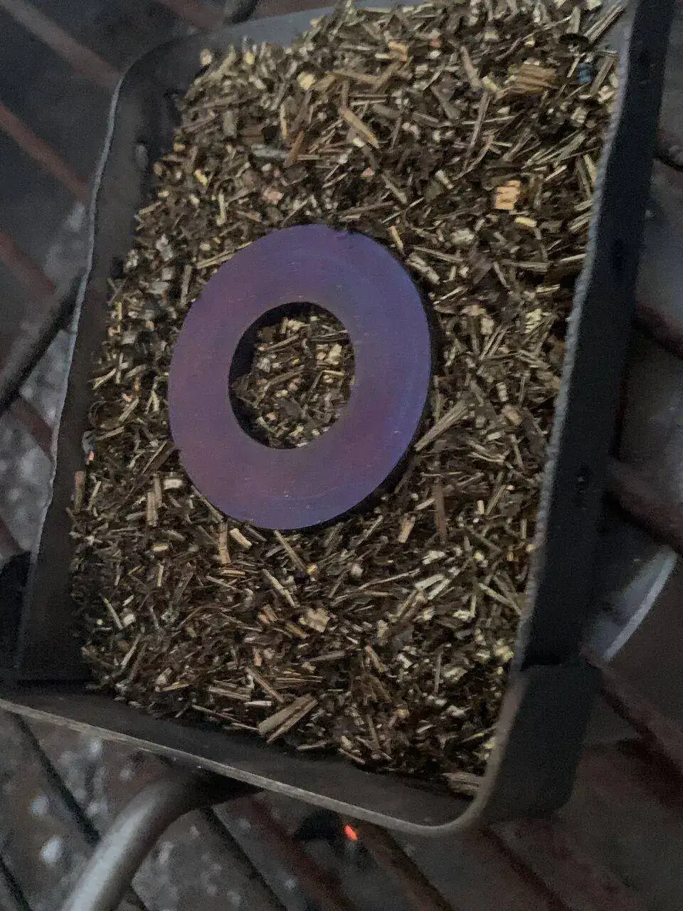 Eres un crack compañero, el resultado es impactante, yo hace tiempo lo hice con un bisel de acero de un reloj ruso, pero mi metodo fue mas "a lo loco" como decimos en Mexico, para referirnos a las cosas hechas apresuradamente, lo calente con un soplete, y despues lo sumergi en aceite (use aceite vegetal, a escondidas de mi MDD, que si se entera, me monta una bronca biblica