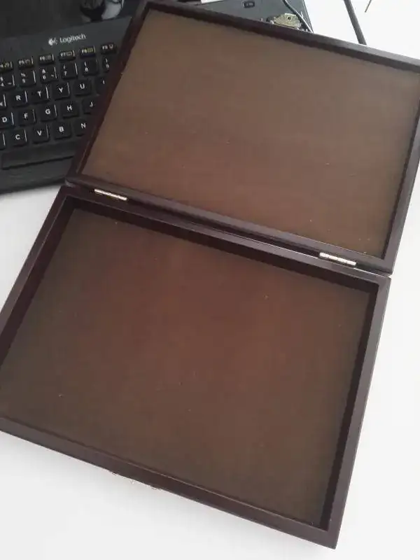 Cuando he querido hacer la primera foto ya tenía forrada la tapa y el fondo de la caja. Pero vamos, no tiene más misterio. Recortar el aironfix a la medida y pegar: