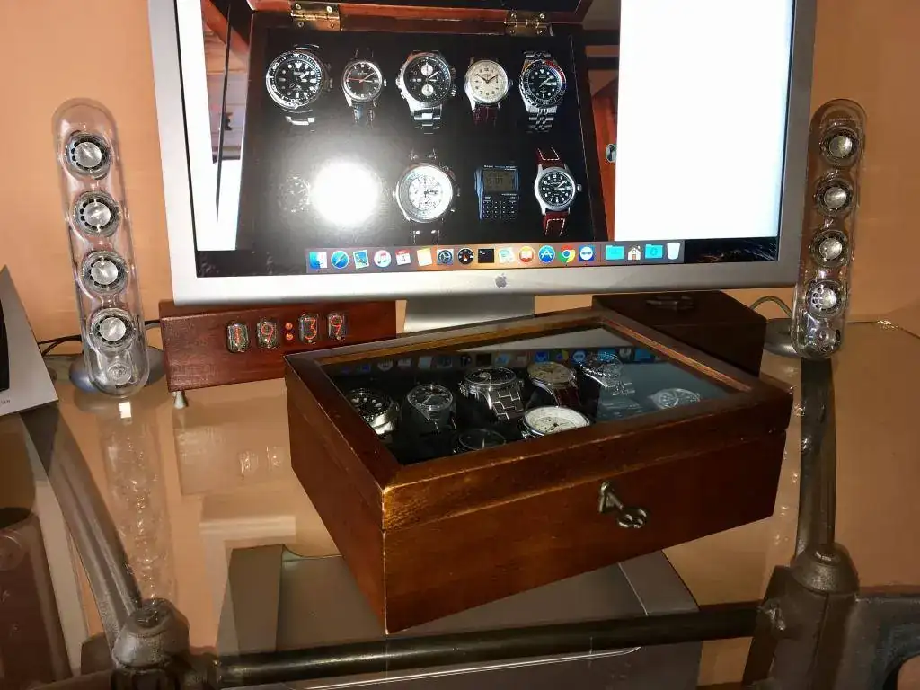 De paso se ve de refilón mi reloj de sobremesa con tubos nixie, eso sí que se ve a la noche mejor que cualquier Rolex!