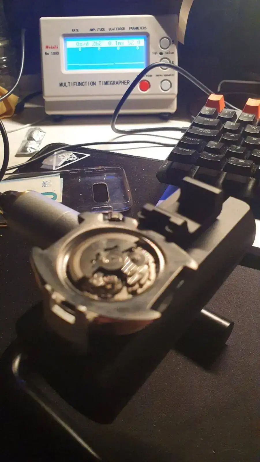 El NH35 no tiene ningún misterio. De hecho por 40 pavos estoy FLIPANDO con la precisión, de momento es el reloj más preciso y regular de los que tengo, muy por encima del Tag con un ETA 7750 y seguido muy de cerca por el Orient Kamasu. Este NH35 del ali ronda el +1 segundo por día puesto, y el -2 durante la noche en la mesilla. Tiene una amplitud salvaje, de más de 330º, y un beat error de 0.1ms. Pensaba regularlo cuando estuviera montado el reloj pero ahora mismo tal y como va no lo toco ni harto de vino.
