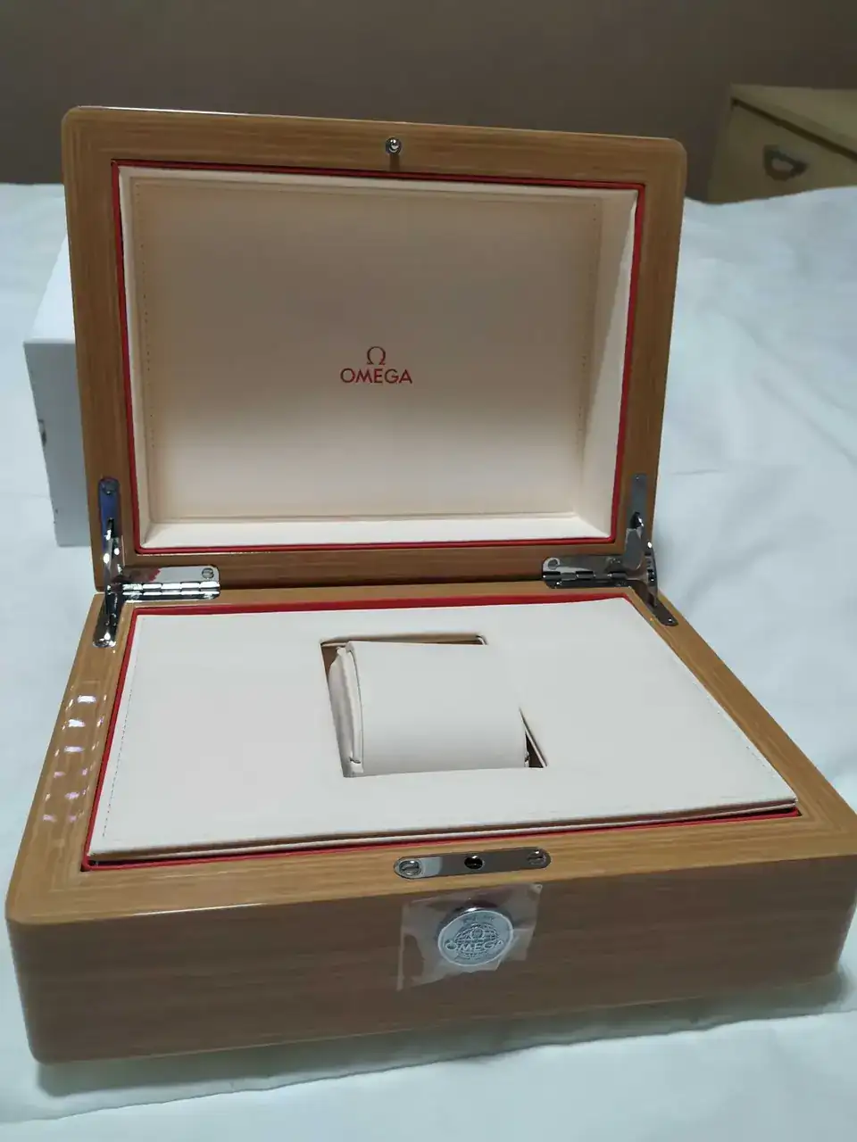 Buenas, vendo esta caja Omega de madera completamente nueva, aun lleva el plastico en el logo.
