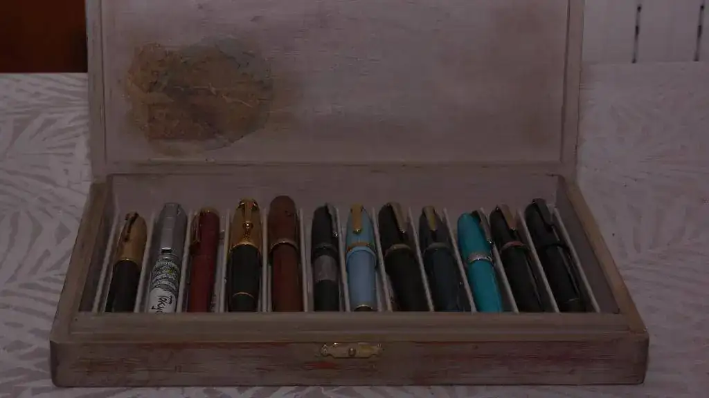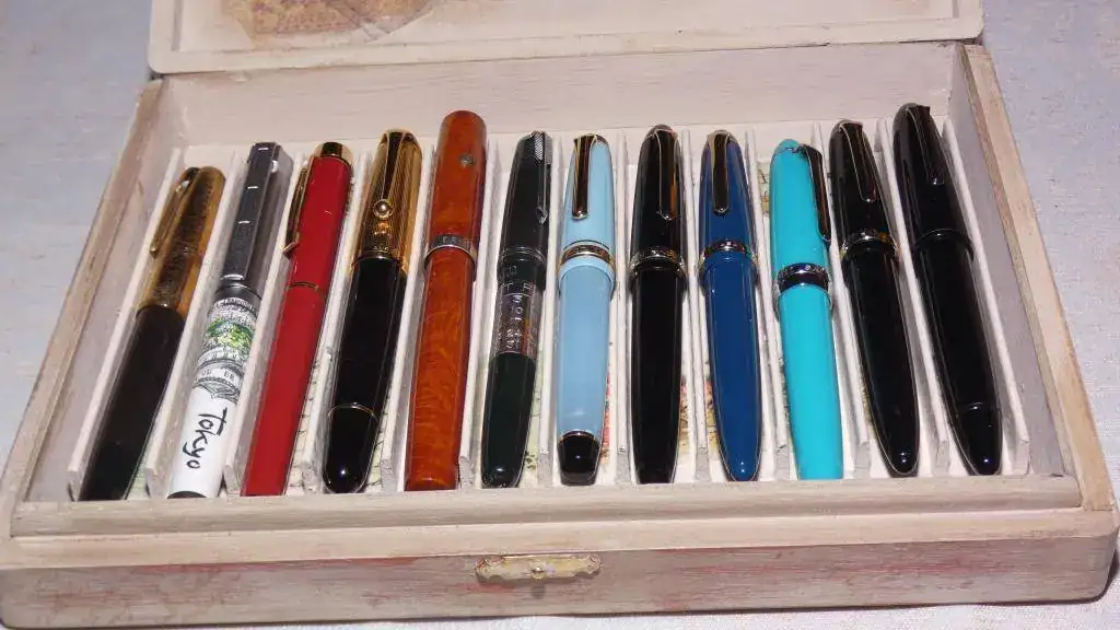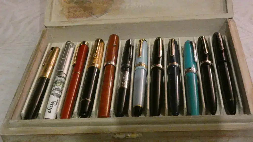 Os presento la caja artesanal con la que me obsequió Valira en el PS de Barcelona. Ha pasado a acamodar a algunas Sailor, a una curiosa estilográfica japonesa con calendario incorporado, a una Aurora 88, una Sheaffer Targa, una Staedler Tokio, una P51 con capuchón martellé y finalmente una de mis joyas, la Gimena ERICA. Quiero agradecer desde quí a Valira su bonito regalo.
