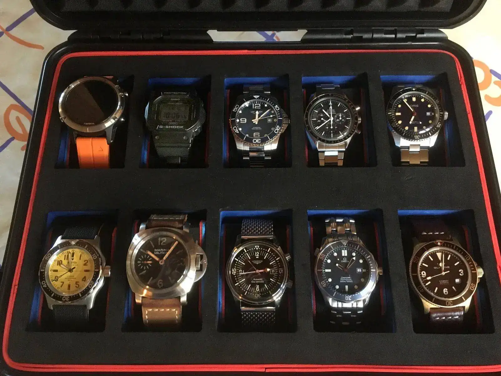 Tras un tiempo conseguí quedarme solo con 8 y esa caja era fantástica no necesitaba mas, fácil de llevar fácil de guardar, resistente, etc. luego llego un noveno, y perfecto 8 en la caja y uno en la muñeca, pero hace unos meses llego un décimo, y comencé a darle de nuevo vueltas a la caja jejejeje. Siempre desde que las vi me gustaron las Pelican Case. en especial esta: