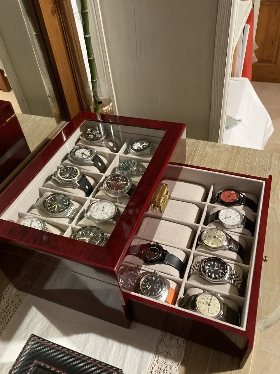Principalmente busco una caja de 8 relojes, pero si hay alguna interesante de 6 o 10, puedo moverme por ahi. Van a estar en un vestidor, y me gustaria que estuviesen "expuestos" asi que valoro mucho cajas verticales tipo vitrina de los WW para poder verlos cada vez que entro al cuarto.