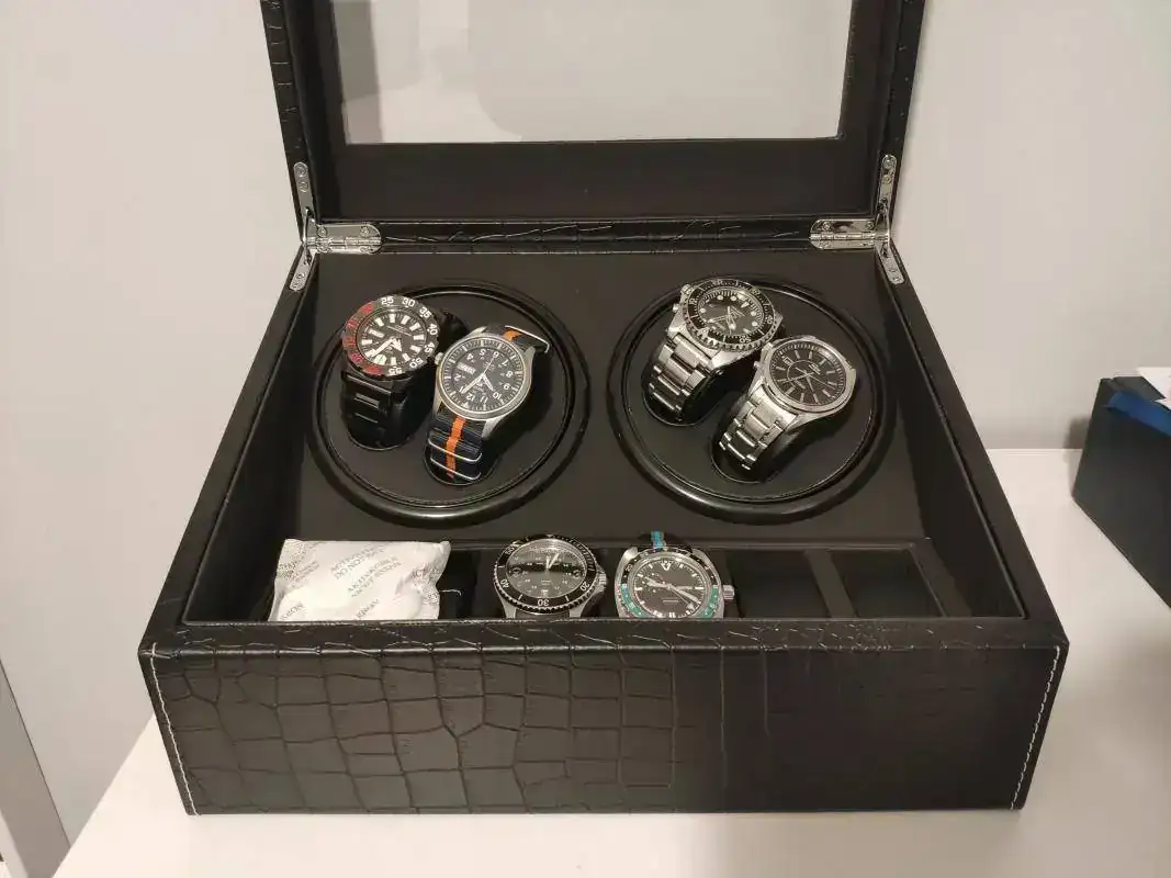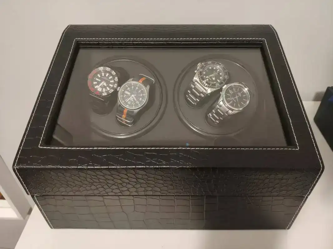 Resulta que me he comprado en Amazon un relojero que incluye dos motores para girar relojes automáticos (en total caben 4 relojes), más seis nichos para guardar otros tantos relojes de modo "estático". El aparato es bastante resultón y su presencia, tacto, prestaciones y materiales creo que son notables para el precio que tiene (sesenta y pico euros). Pero al leer las instrucciones dice algo que me ha dejado un poco descolocado. Aunque reconozco que no sé nada de este tipo de relojeros, el manual dice que su sistema giratorio sirve para mantener la carga de los relojes, no para cargarlos. Y ahí me ha matado, porque si cada vez que cojo un reloj para un día es probable que gaste más energía que la que recarga, y lo vuelvo a colocar en el motor…#sólo lo mantendrá con esa carga, y el día siguiente que lo coja tendrá un poco menos que el anterior. Y así progresivamente hasta que se quede sin energía suficiente.