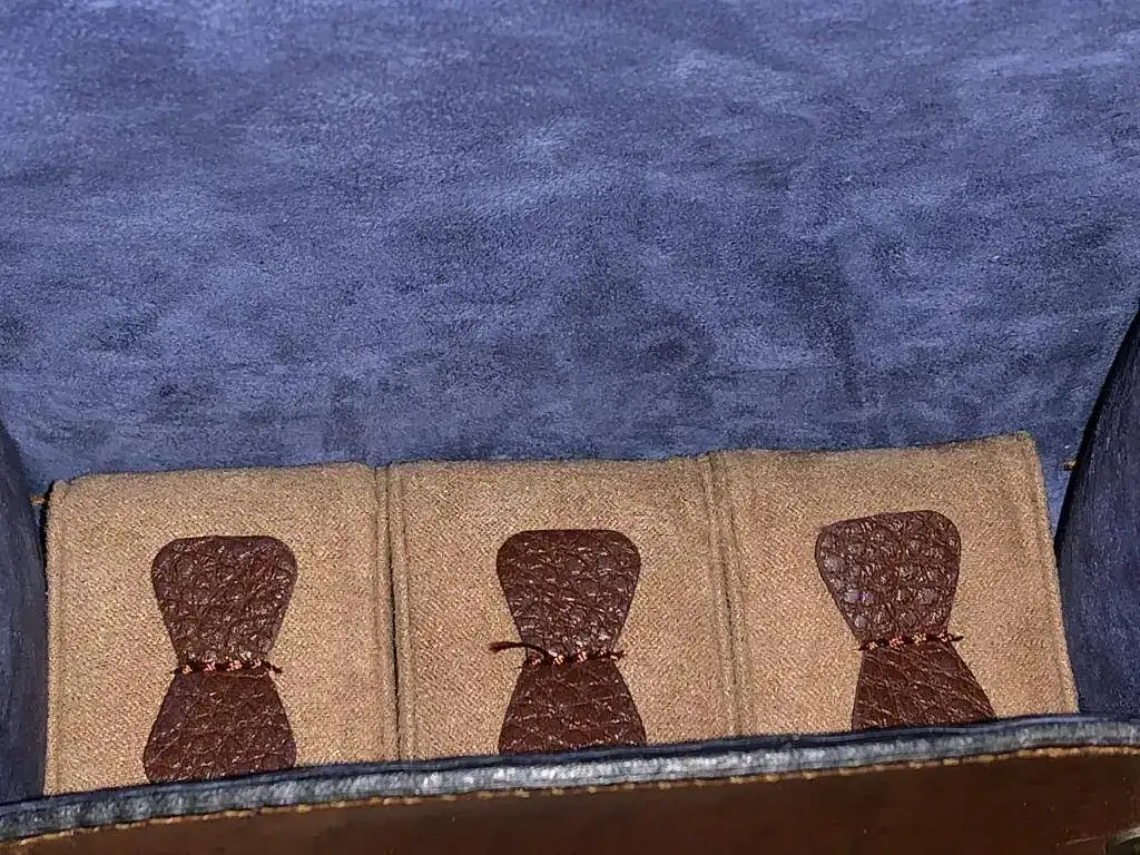 Me apetecía algo de cuero, tipo baúl, que cogiera el reloj con su almohadilla y sólo tuviera que pasarlo de un sitio a otro.
