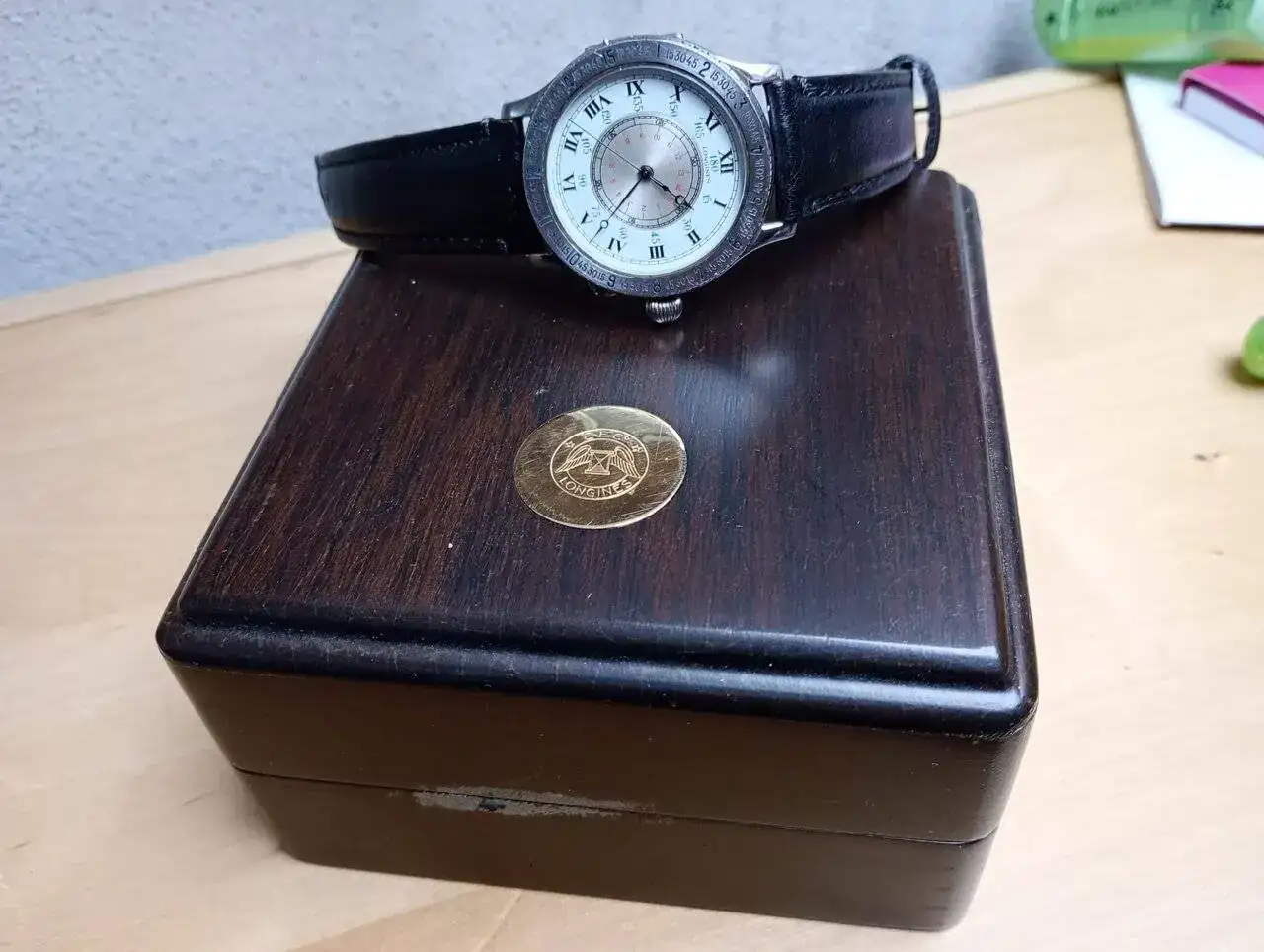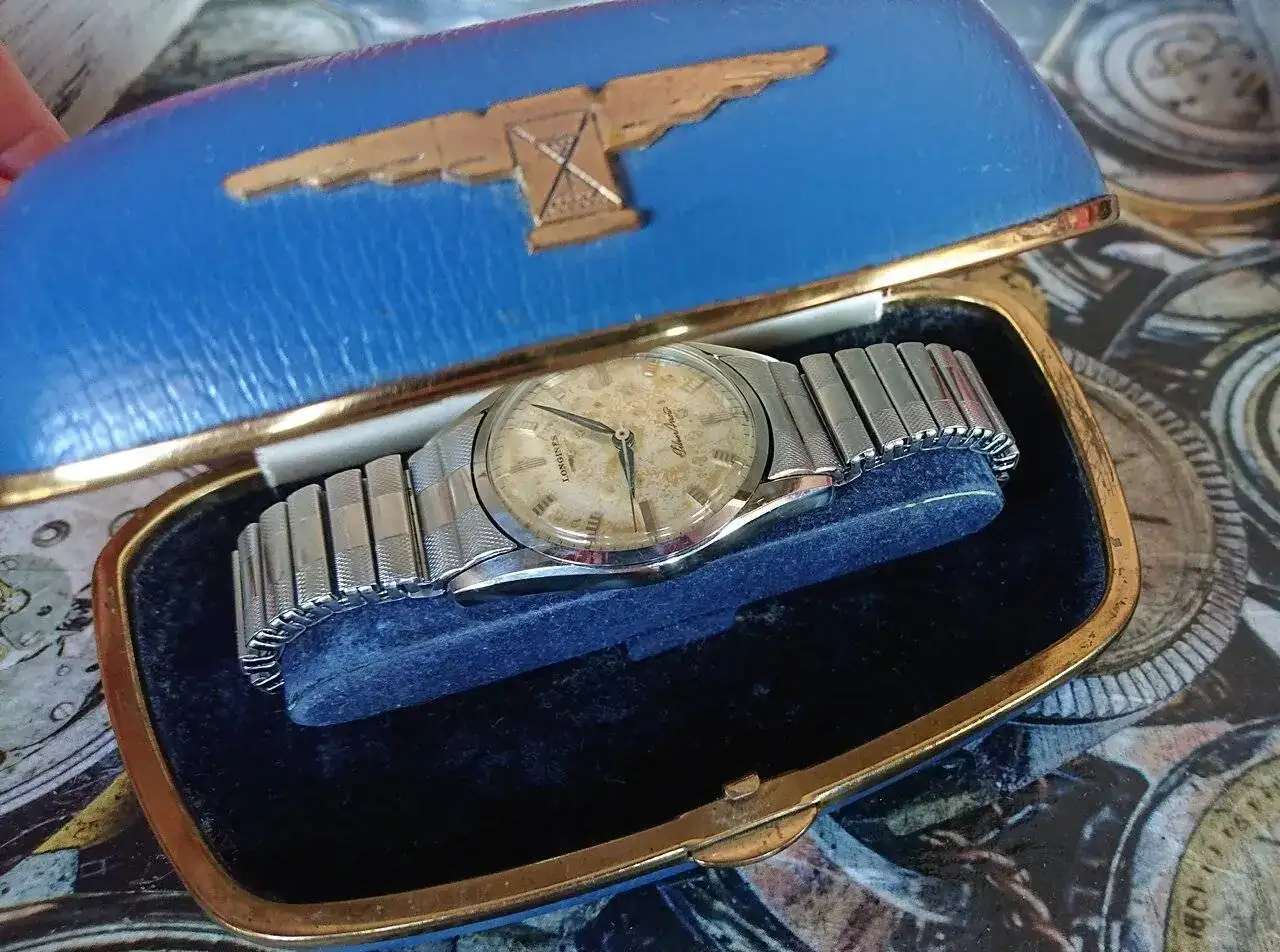 Cada cual que se organice y comparta como mejor le cuadre. Yo iré poniendo fotos a medida que pueda, pero arranco con una pieza de mi querida Longines, que, además de relojes fantásticos, también cuidaba mucho este aspecto de la presentación y ofrecía unos estuches bellísimos y de gran calidad (no tan enormes como los actuales, gracias a Dios; por eso tengo unos cuantos). Sin más rollo, ahí van las fotos