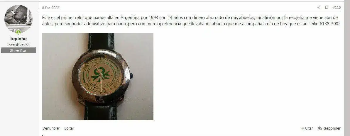 Ves estos dos relojes pues son del mismo forero, el primero era de cuando me gustaban los relojes pero no podía permitirme algo mejor además de gustarme su estética y el segundo ( estrenado por mi) de cuando si me he podido permitir algo mejor. Sabes por que tengo el primero para que me recuerde que aunque esté en el segundo se puede volver al primero.