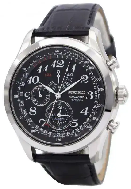 De todas formas, ese Orient creo que no es perpetuo al 100%, ya que el disco de los días del mes tiene hasta 31. Su sistema aún no lo entiendo muy bien, es un poco complicado. El perpetuo de Seiko no es tan complicado como parece, lo ví en un vídeo y es sencillo, tiene 2 modos: cronógrafo y normal. En el modo normal, si pulsas al botón de abajo la manecilla más larga se mueve hacia el día del mes en el que estamos, y si pulsas otra vez, se va al mes. Evidentemente aquí no hay nada mecánico; todo es pura electrónica. Como detalle curioso, ese reloj tiene alarma, lo cual en cierto modo suple un poco la carencia de luminiscencia.