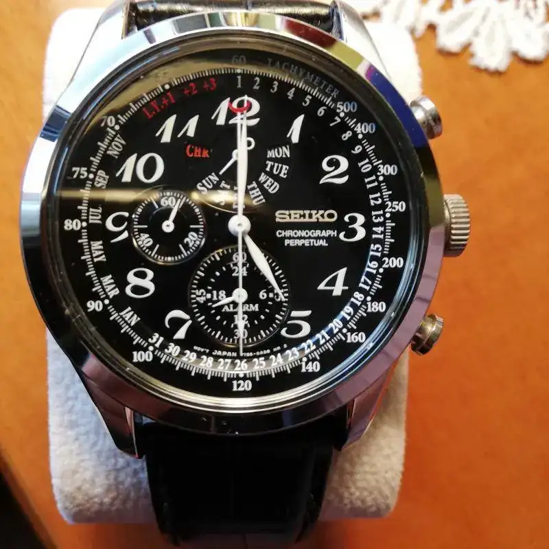 Se trata de un reloj de titanio el cual tengo en mi poder desde hace 20 años y su particularidad es que desde que lo compré no tuve necesidad de cambiarle nunca ni hora ni fecha (en mi país no tenemos ningún ajuste horario en el año) solo es necesario dejarlo (cuando no se usa) cerca de una fuente luminosa indirecta y listo. Tiene otras funciones adicionales como ser cronógrafo, alarma y hora mundial.