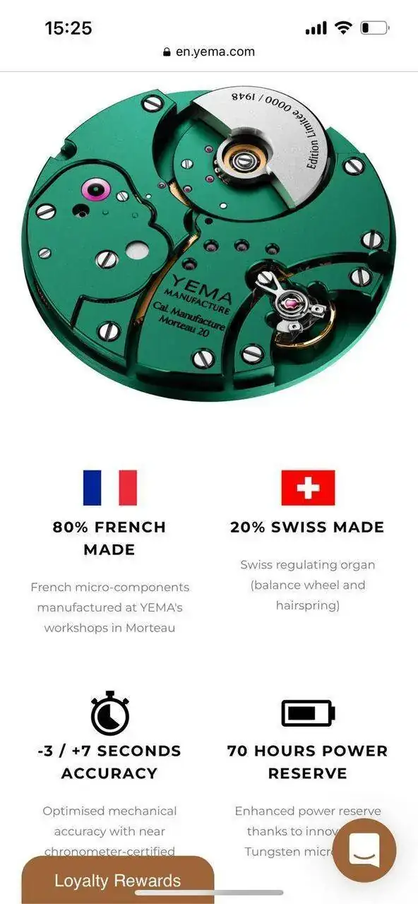 Y con respecto a Yema , en mi opinión , el hecho de que parte del calibre se fabrique en China no le resta nada de mérito. Orient (Seiko Epson ) también fábrica en China y es un House.
