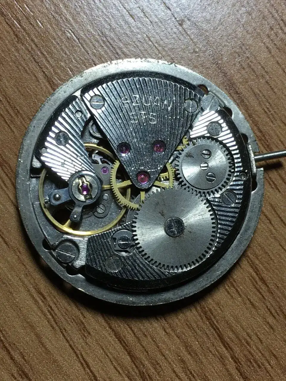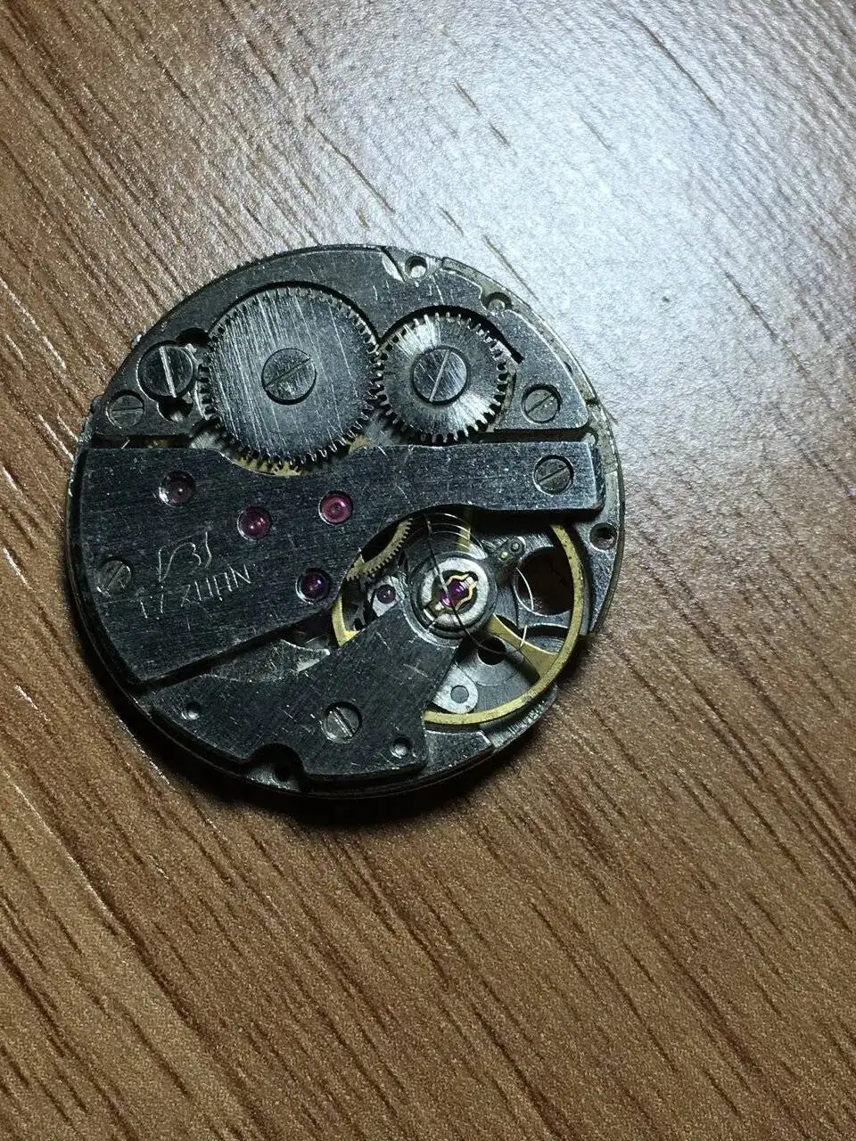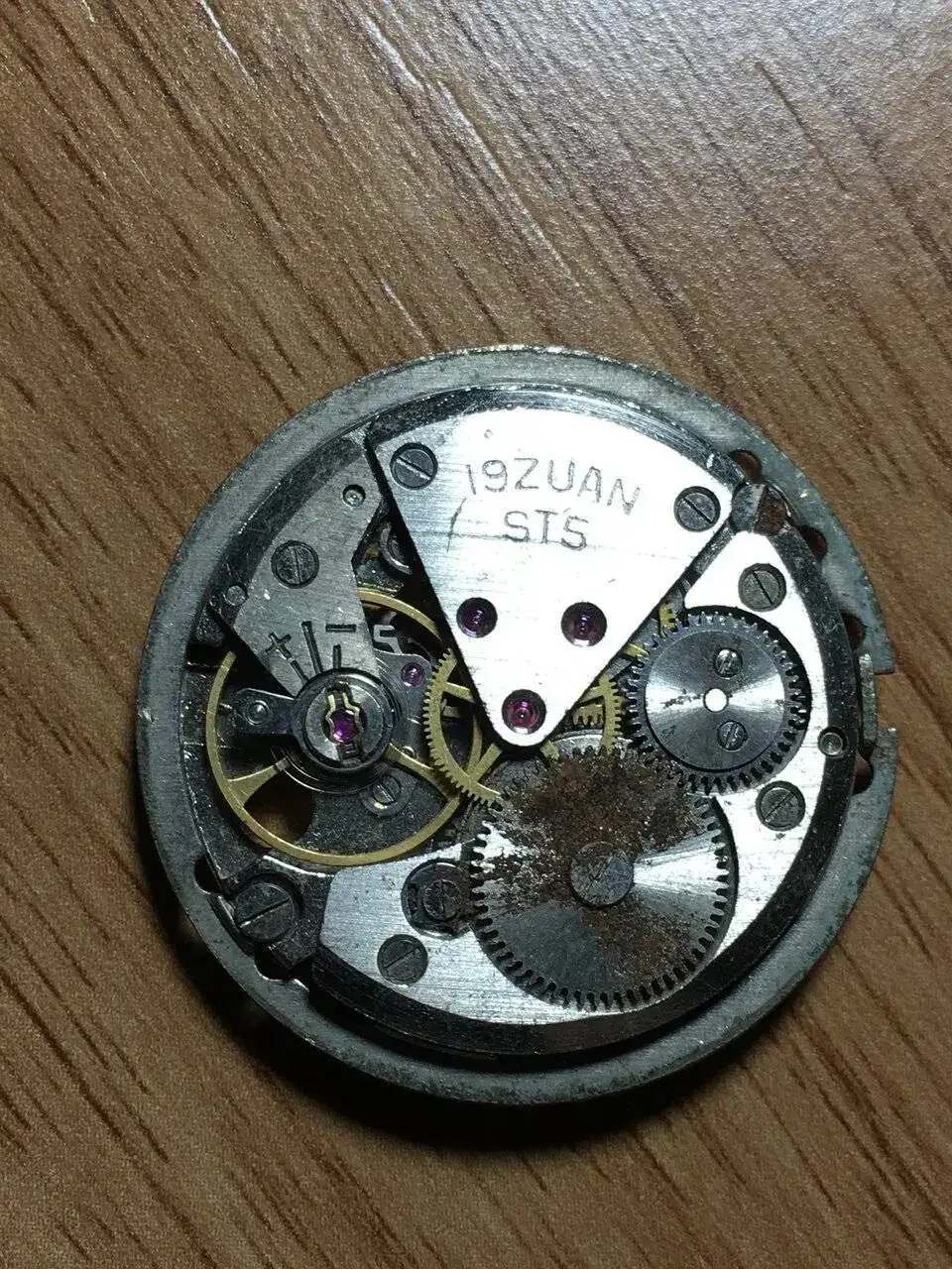 Otro reloj de desguace. Esta vez un Titus que viene sin el eje de volante. Para valorar su viabilidad necesitaría saber qué movimiento es para buscar el volante completo. Pero he visto lo que aparece en la segunda foto, que creo que es una ñapa que le hicieron para sujetar las báscula. ¿Cómo lo véis?