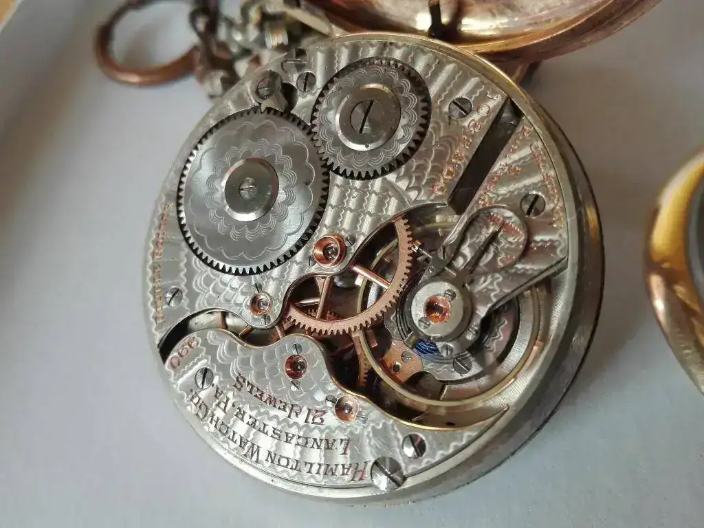 El de la foto es uno mío: Hamilton 990, 16s, Rail Road grade, de 1914. De cuando la Hamilton hacía relojes.
