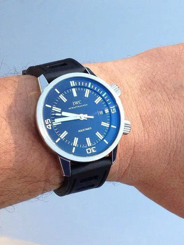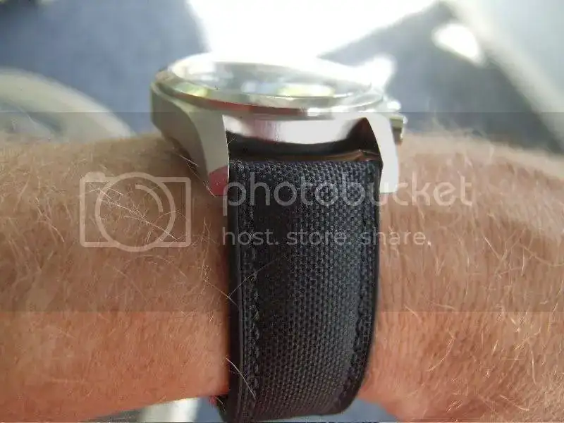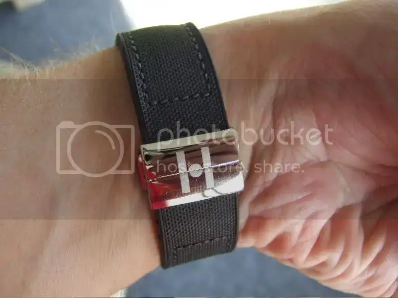 Ahora lo llevo con la tropic de serie, que siendo sumergible, es un poco rígida, y no hay agujero para la hebilla en la longitud que me iría perfecta. Me resulta un poco incómoda.