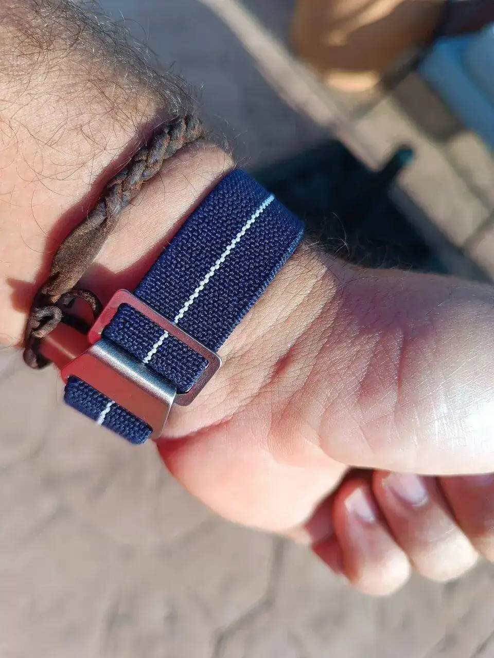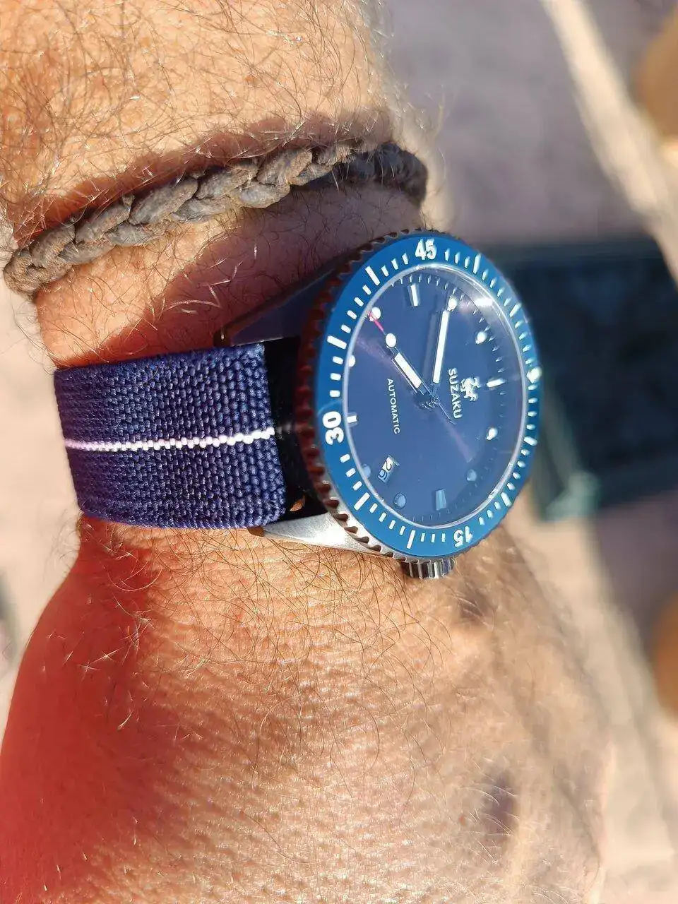 El caso es que viene de serie con una correa de tela de barco (sailcloth) azul oscuro algo durilla, así que he estado probando otras, de silicona, estilo tropic...y había perdido la esperanza en este reloj, cuando se ha encendido la luz.
