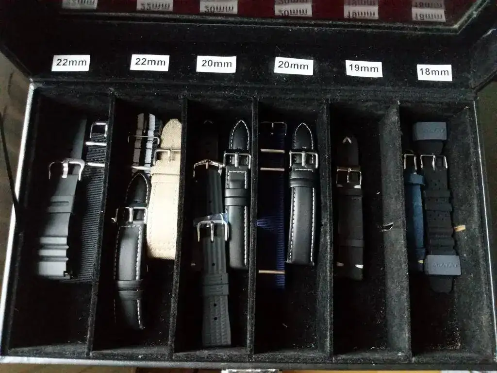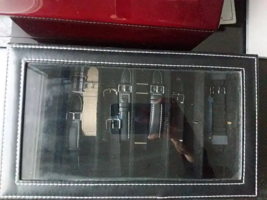 Esta caja que me he montado para tener mis correas perfectamente ordenadas.