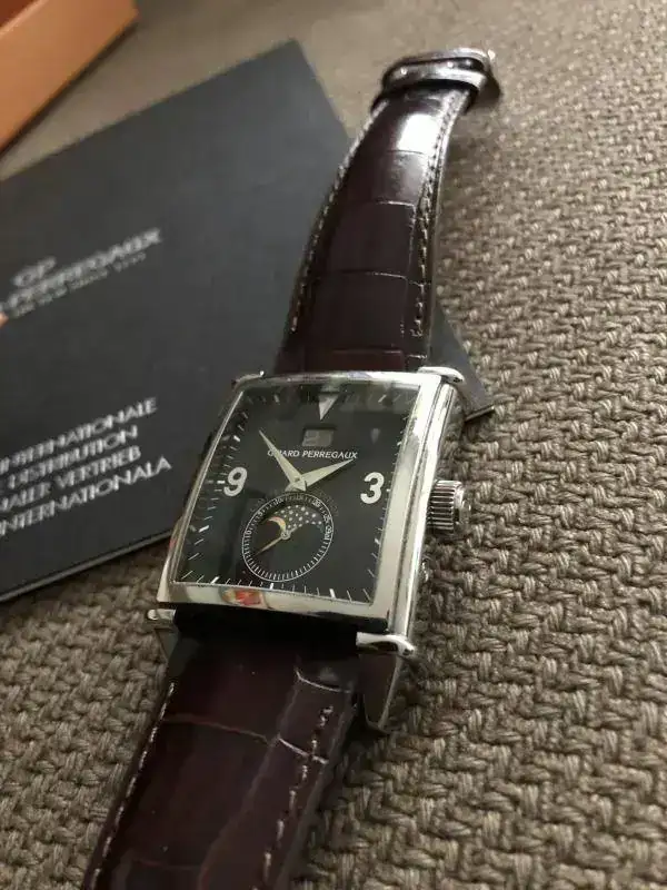 Es un Girard Perregaux encuadrado en la serie "Vintage 1945" , con moonphase y big date, manufactura en su versión en acero de uno de los iconos de la marca, y este en concreto es el número 47 de solo 50 piezas producidas en una serie llamada Club Edition.