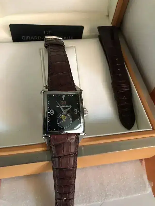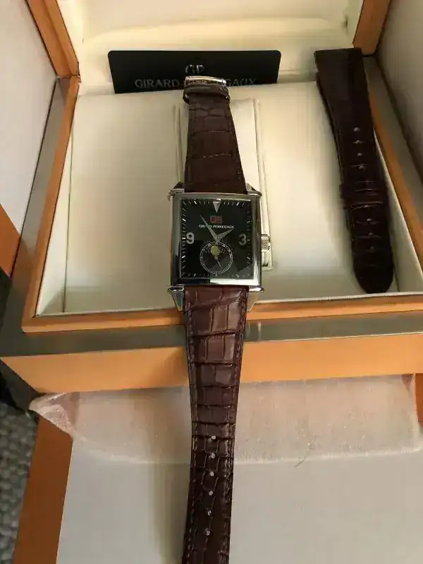 Garantía: tarjeta sin sellar. Los relojes vintages como estos son muy difíciles de encontrar con las tarjetas selladas como todos ya sabemos. He pedido a Girard Perregaux directamente un certificado de este y varios relojes más que tengo y estoy a la espera de recibirlo, ya que ya se los he pedido en anteriores ocasiones y los acaban enviando, eso sí, tardan.......y tardan y tardan. Se entregará si y solo si llega ...y lo envían desde La Chaux des fondos.
