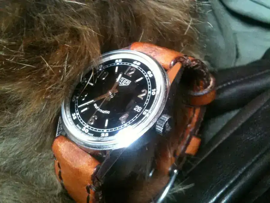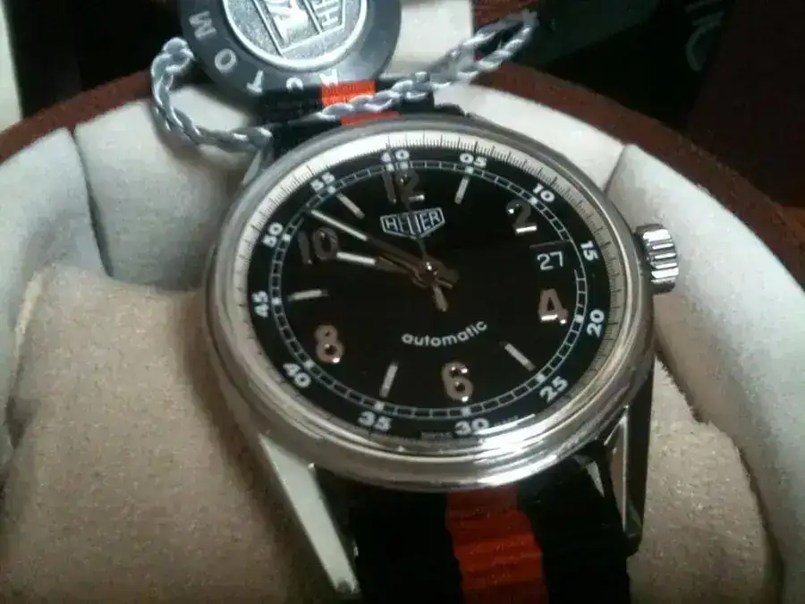 Buenas a todos. Procedente de un cambio con un estupendo forero, os propongo para venta o para cambio este precioso Tag Heuer Carrera solo hora con un exquisito regusto vintage. Es una réplica del modelo de 1964 como denotan su cristal plexi abombado o su Leyenda HEUER tanto en esfera, tapa trasera así como en su ardillón.