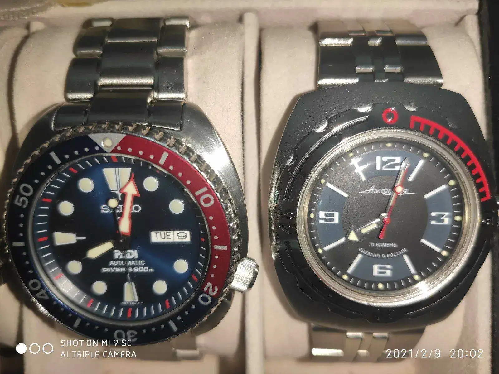 Las incorporaciones más recientes son el Anfibia, regalo de reyes y el Sarb 065, comprado a un forero. Poco a poco creo que voy mejorando la caja. Tienen que salir los cuarzos que aún quedan y el ph 200 que es de mi hijo.